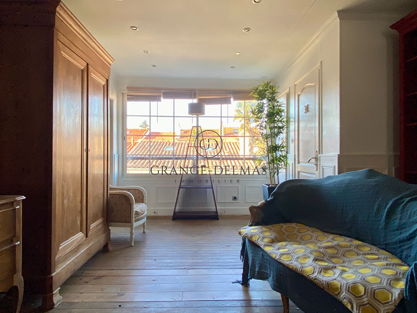 L'entrée de l'appartement se fait par une entrée privative au rez-de-chaussée. Un escalier en pierre mène au 1er niveau qui s'ouvre sur une très belle pièce de vie traversante de plus de 50m² avec cheminée, parquet, boiseries et cuisine ouverte aménagée. Une chambre, une salle de bain, un espace dressing, des wc séparés et une buanderie finalisent ce niveau.