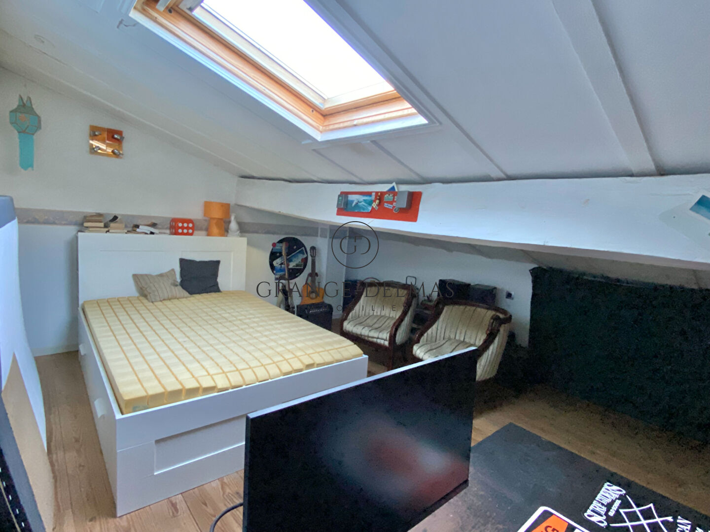Un escalier en bois et métal mène au niveau supérieur avec 2 chambres supplémentaires avec velux et un wc.