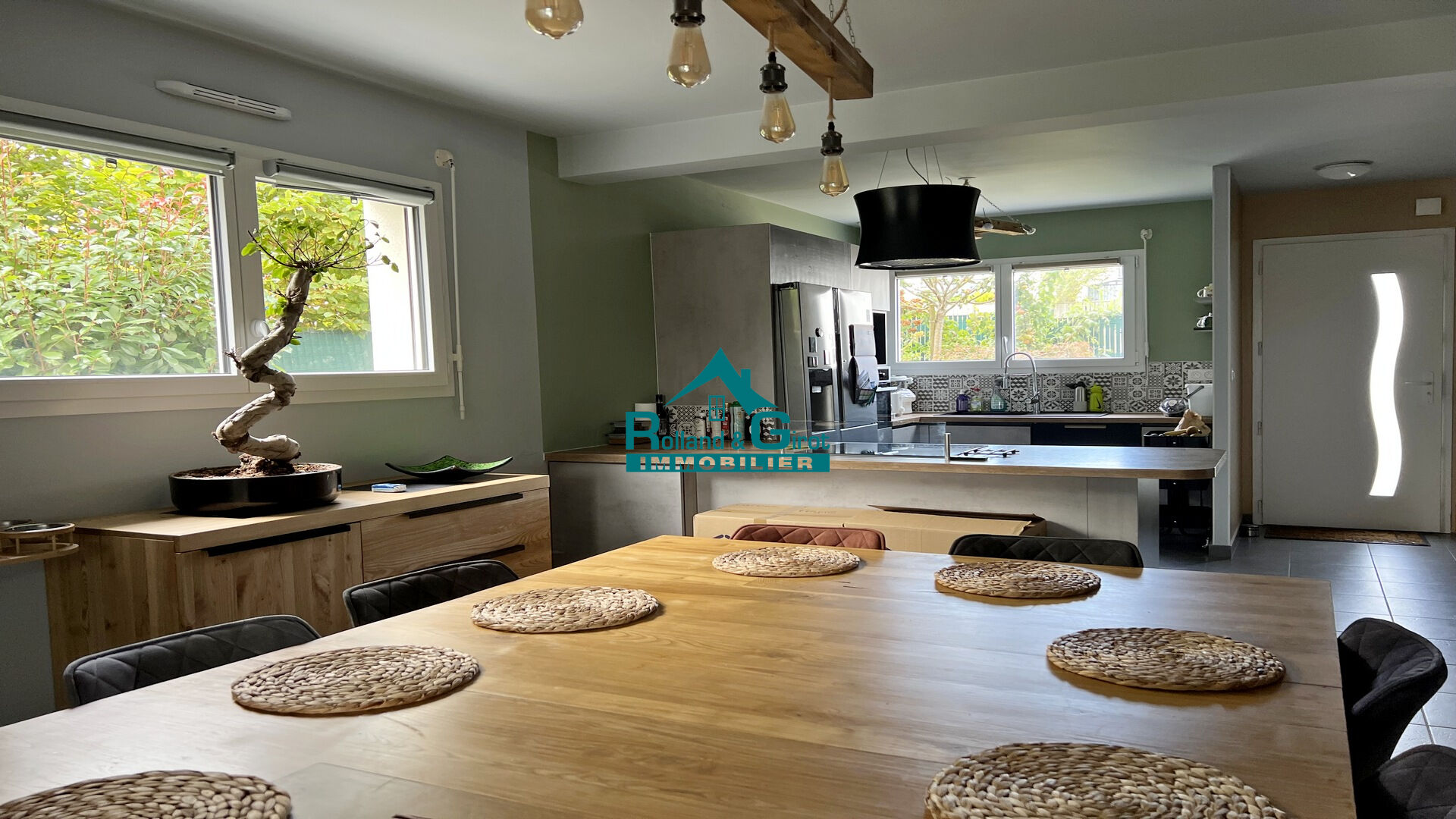 Au rez-de-chaussée, une très belle pièce de vie de 50 M² comprenant une cuisine ouverte sur sa salle à manger, le coeur de vos repas en famille ou entre amis, tandis que le salon baigné de lumière, orienté Sud-Ouest, vous invite à prolonger ces moments en ouvrant directement sur le jardin.