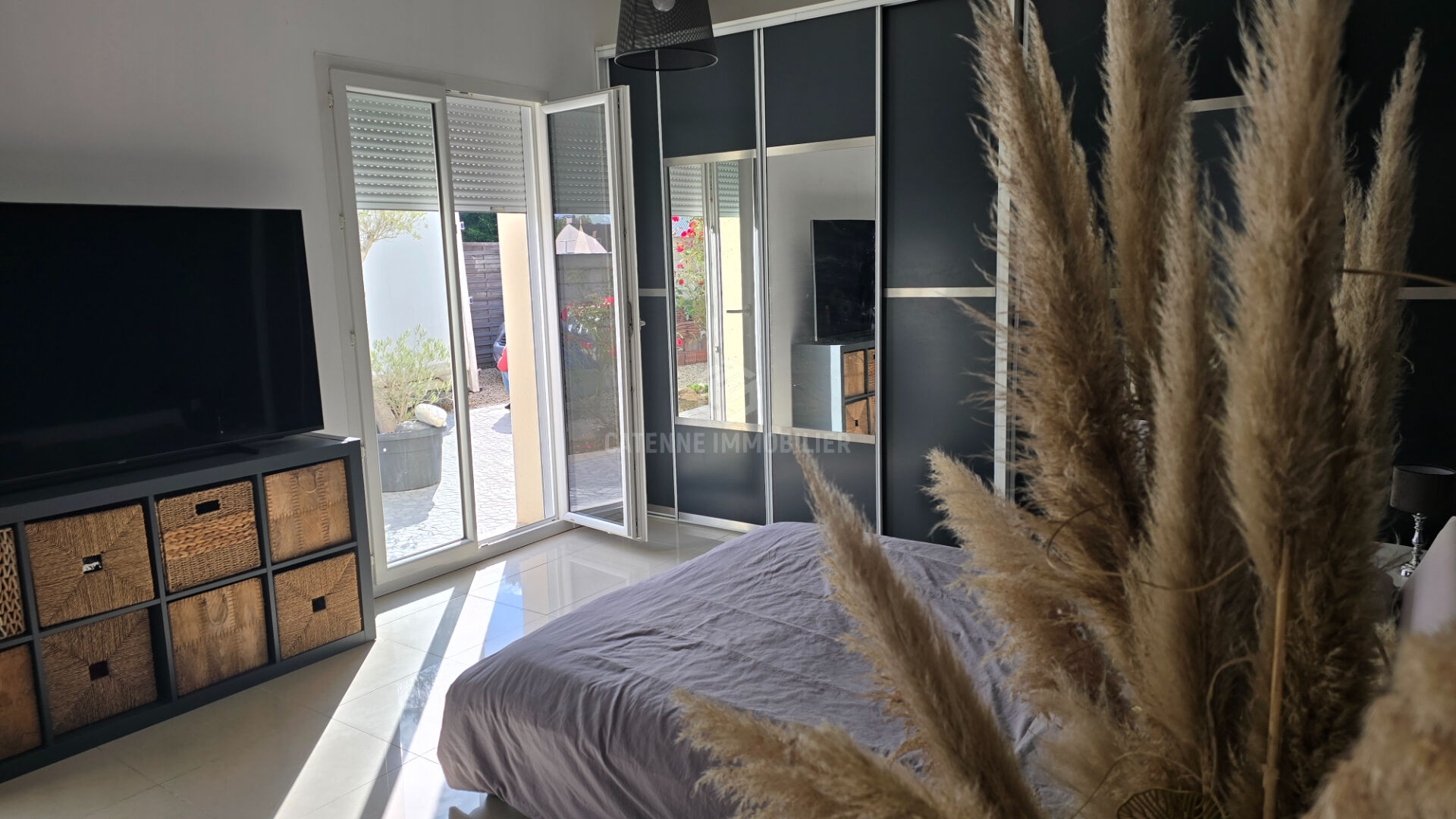Terrasse en carrelage sur le devant et le côté de la maison et terrasse en bois à l'arrière et sur le devant de la piscine pour vos moments de détente. Piste cyclable "La voie verte" à proximité.