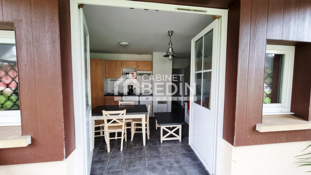 Exclusivité CABINET BEDIN - ARES COTE BASSIN. Idéal investisseur. Vendue louée avec un bail commercial avec une excellente rentabilité de 8264,88 euros par an. Maison de type 2 située dans une résidence de tourisme avec piscines, à deux pas du bassin de baignade de Saint Brice et de la Plage. La maison offre de plain pied une entrée, un vaste séjour avec cuisine aménagée et équipée, une chambre, une salle de bains fonctionnelle avec wc. Terrasse ensoleillée sur l'arrière.