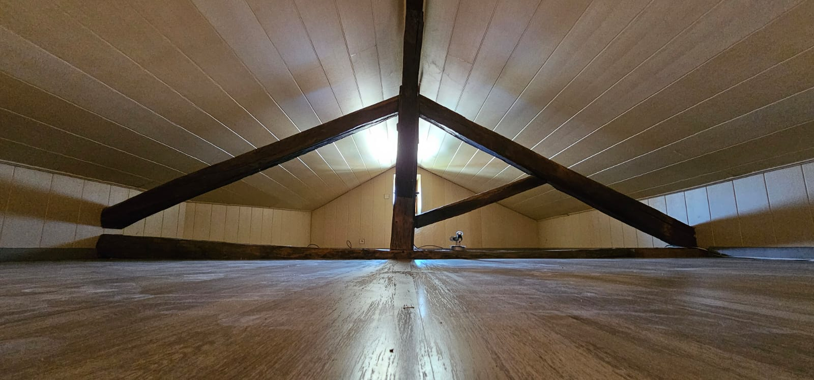 Une mezzanine offre un espace ou vous pourrez créer un bureau ou du rangement. Grenier