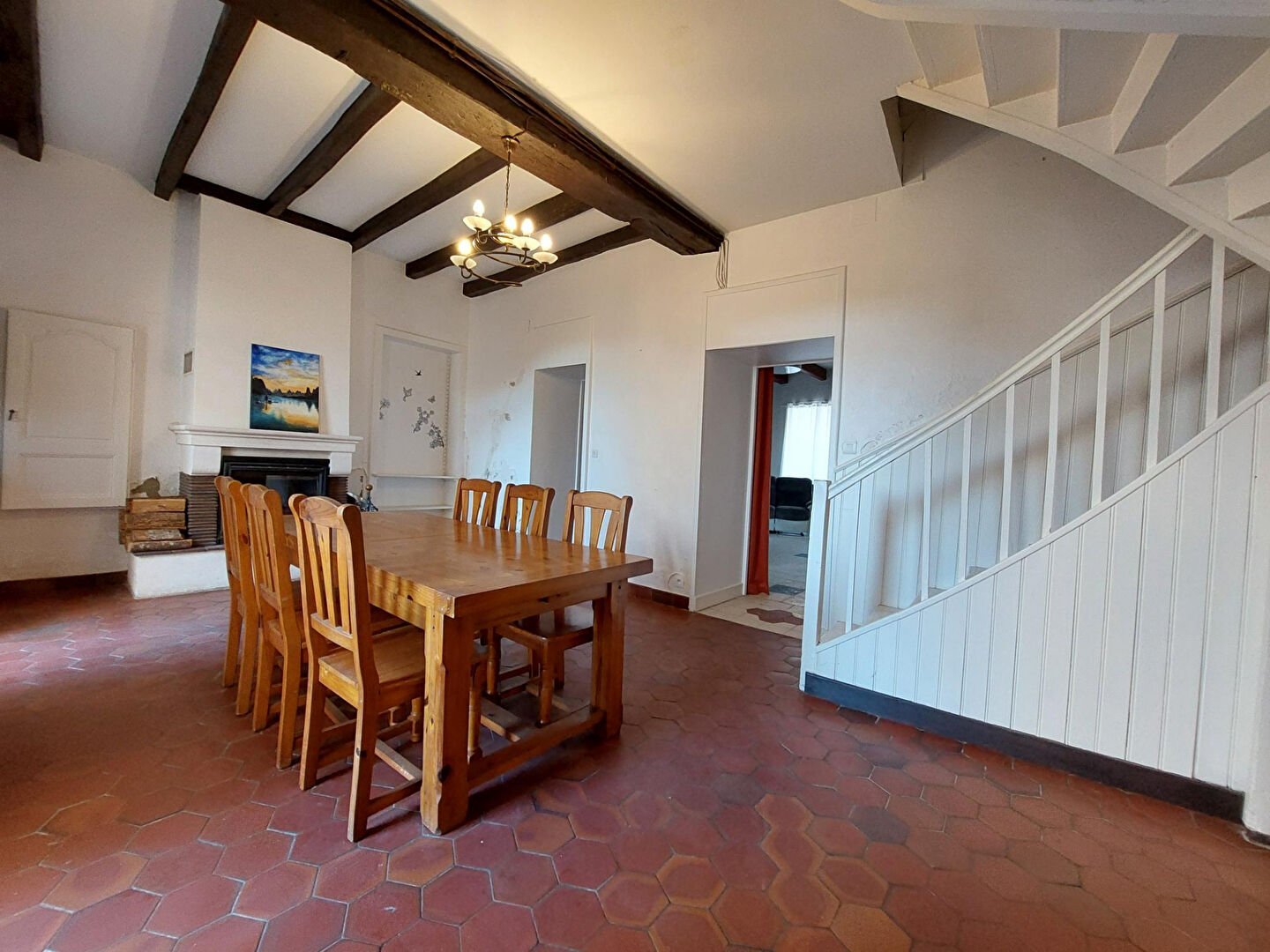 Centre de Soubise, maison de caractère d'environ 148 m² comprenant : séjour, salon, cuisine aménagée, 4 chambres, bureau, salle d'eau, cave et terrasse.
