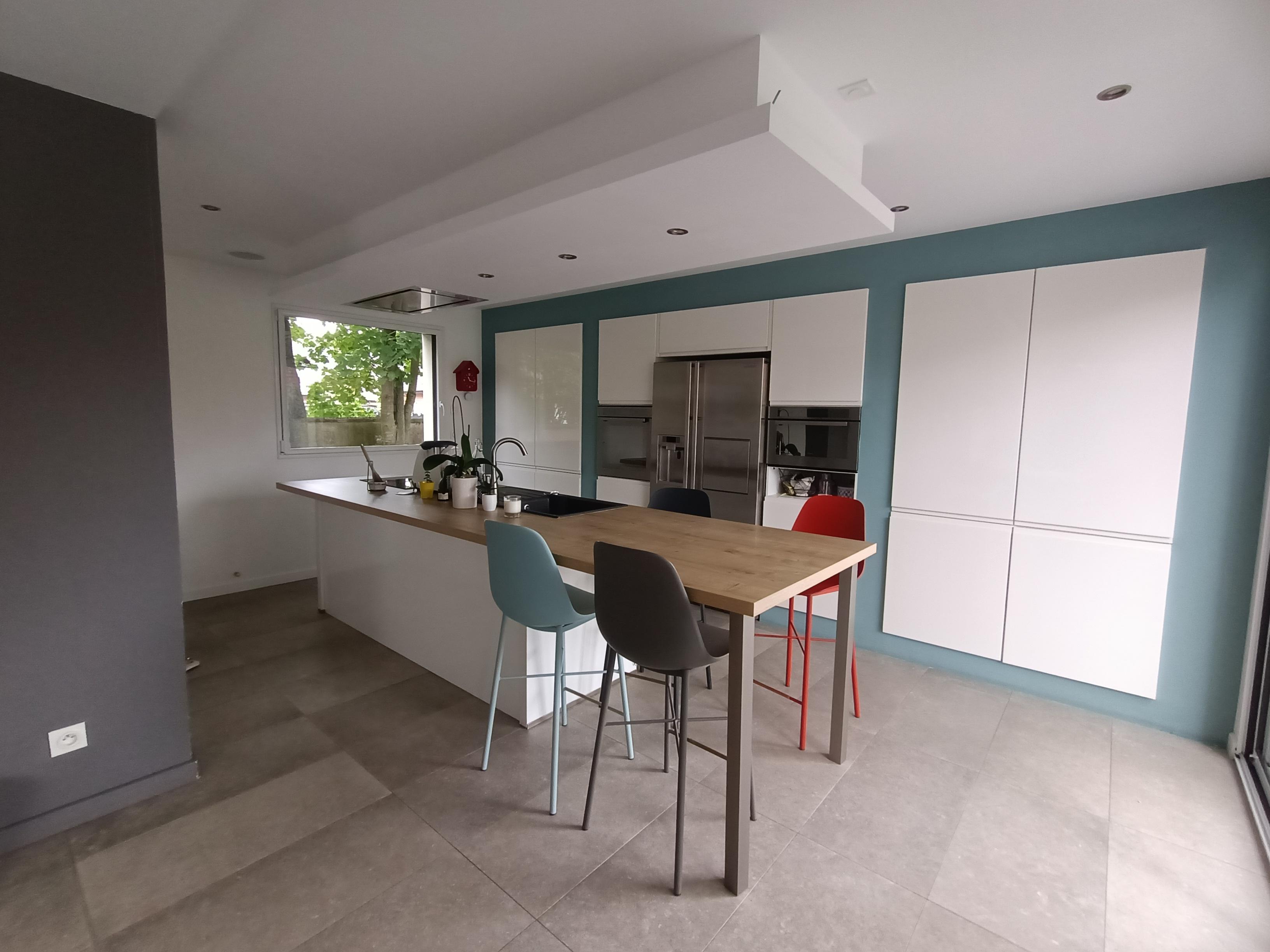 AU RDC : spacieux et chaleureux séjour donnant sur la terrasse, cuisine ouverte fonctionnelle entièrement équipée avec îlot central, suite parentale indépendante disposant de son dressing, chambre et de sa salle de douche privative. Buanderie cellier communiquant avec le garage.