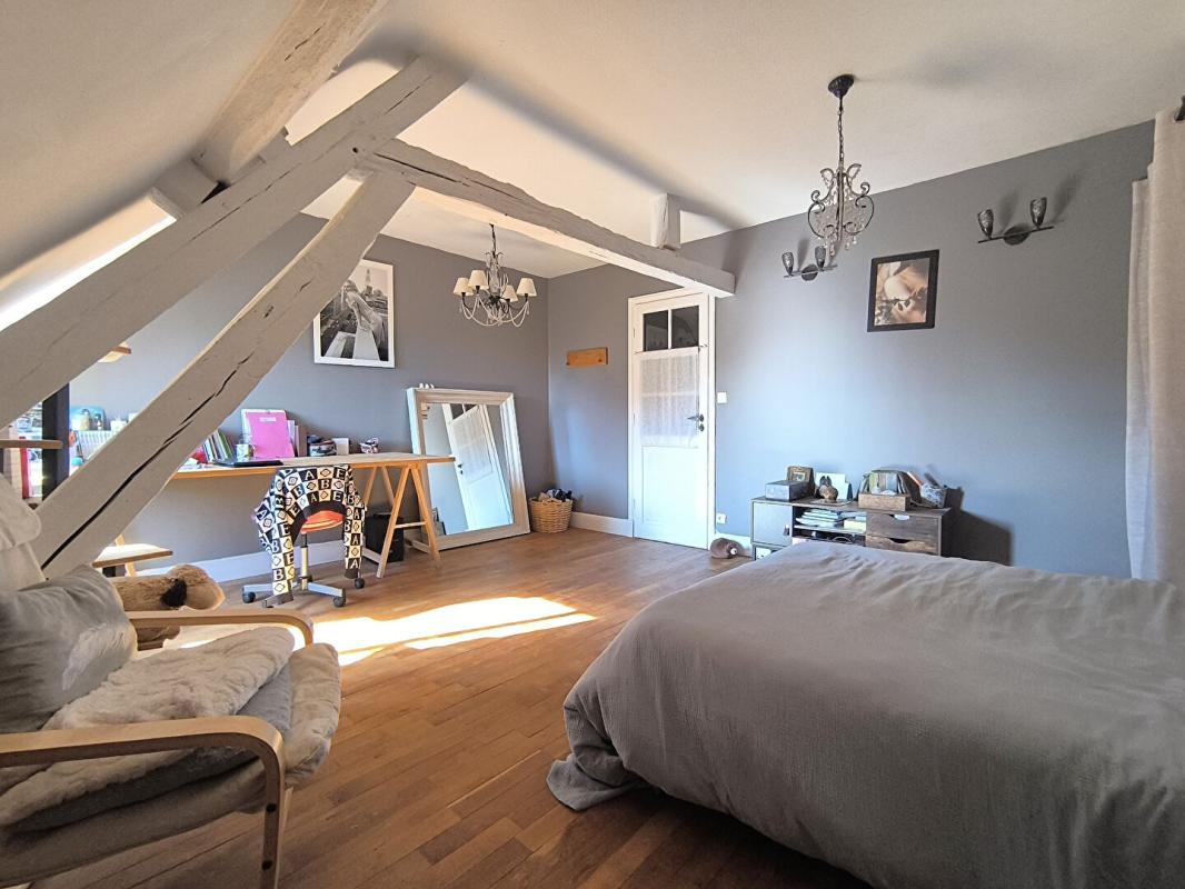 A l'étage, un grand palier distribue trois belles chambres (dont deux avec dressing), une salle de bains avec WC, ainsi qu'une pièce supplémentaire servant de stockage.