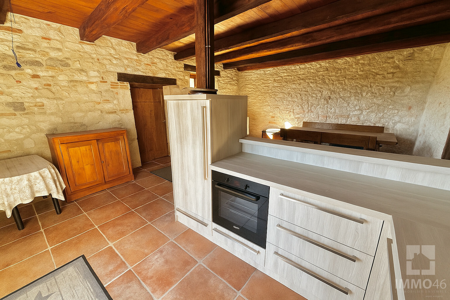 L?agence IMMO46 vous propose à la vente cette charmante maison en pierre de près de 90 m², édifiée sur un beau terrain de 3 000m². Vous serez séduits par la superbe vue qu?elle offre ainsi que par son emplacement privilégié, à seulement 1 km du village avec tous commerces et commodités, et à moins de 15 minutes de Caussade.