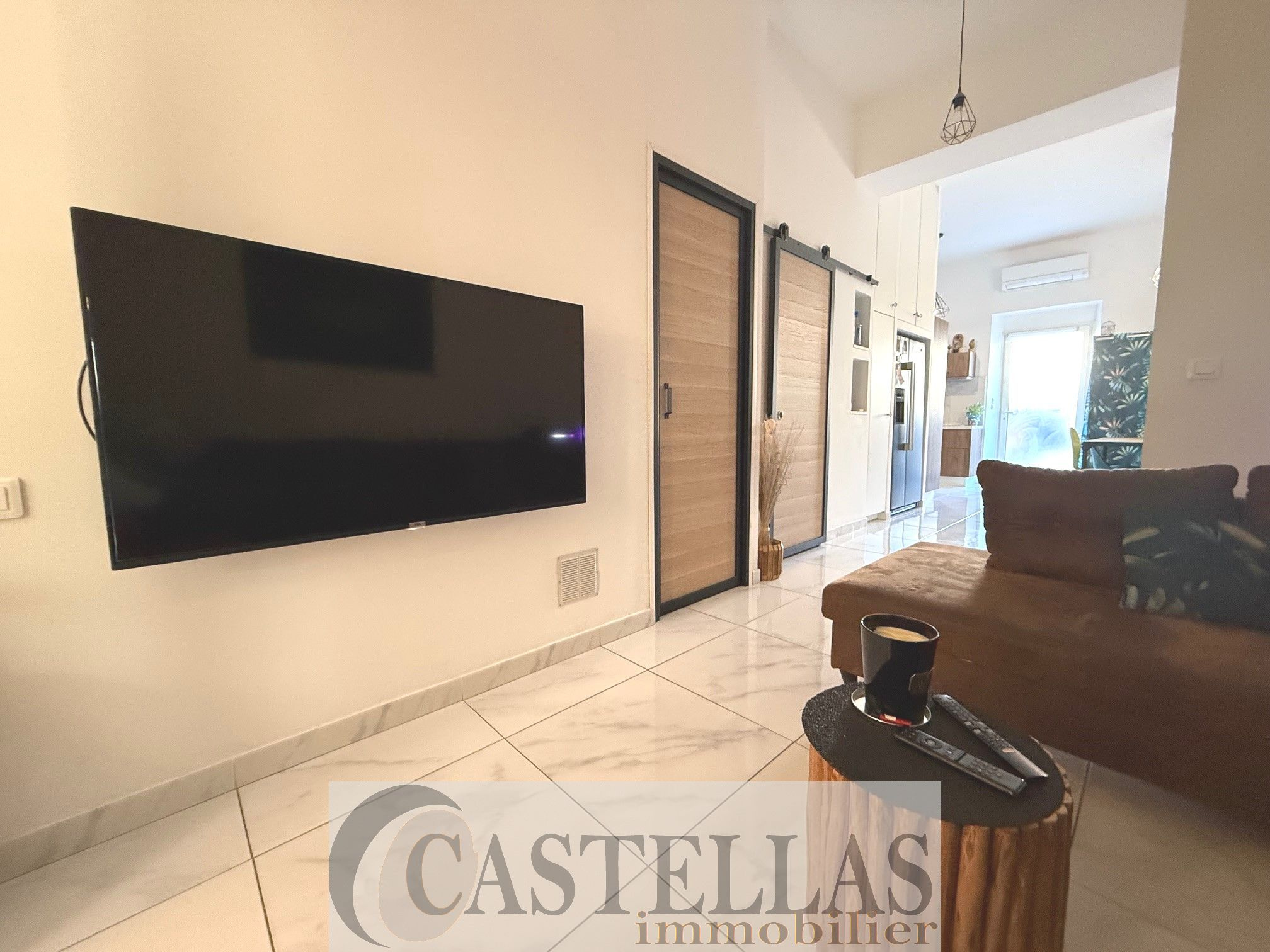 EXCLUSIVITÉ - Roquefort-la-Bédoule. Dans une résidence fermée, au calme. T3 entièrement rénové de 58.50 m2 de surface habitable, dont 45.73 m2 en loi Carrez. Situé au rez-de-chaussée d'un petit immeuble, entrée indépendante. Bel espace de vie de 31.5 m2 avec cuisine ouverte, deux belles chambres et terrasse spacieuse de 17 m2.