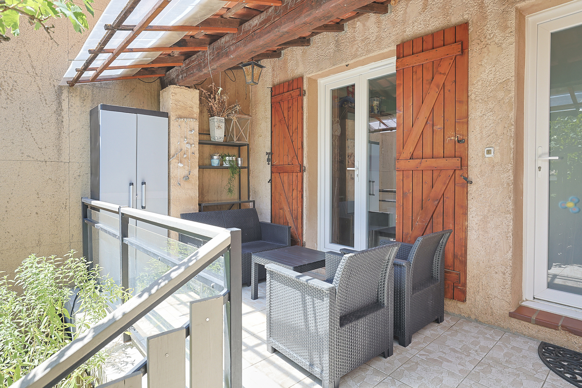 A l'extérieur : Vous trouverez un jardin accessible par le salon mais aussi directement par la cuisine .... idéal pour les repas extérieurs. Côté façade l'espace a été particulièrement bien pensé et très bien aménagé avec une terrasse couverte/salon d'été, un espace idéal jacuzzi (ou piscine hors-sol) sans vis à vis ni promiscuité !