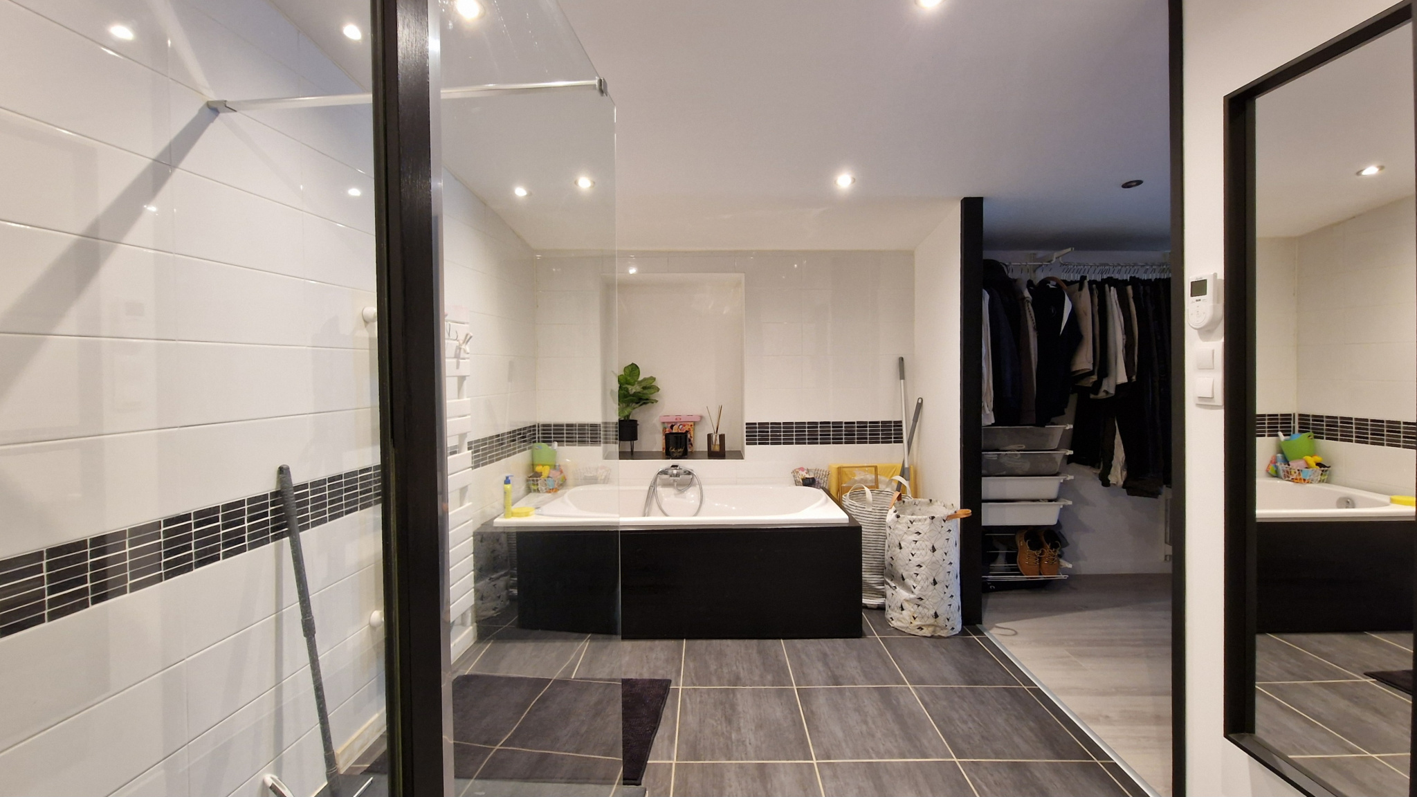 À l'étage, un vaste palier pouvant servir de bureau dessert trois chambres confortables, dont une belle suite parentale avec sa salle de bain privative, son dressing et son WC. Une seconde salle de bain ainsi qu'un autre WC offrent un confort optimal pour toute la famille.