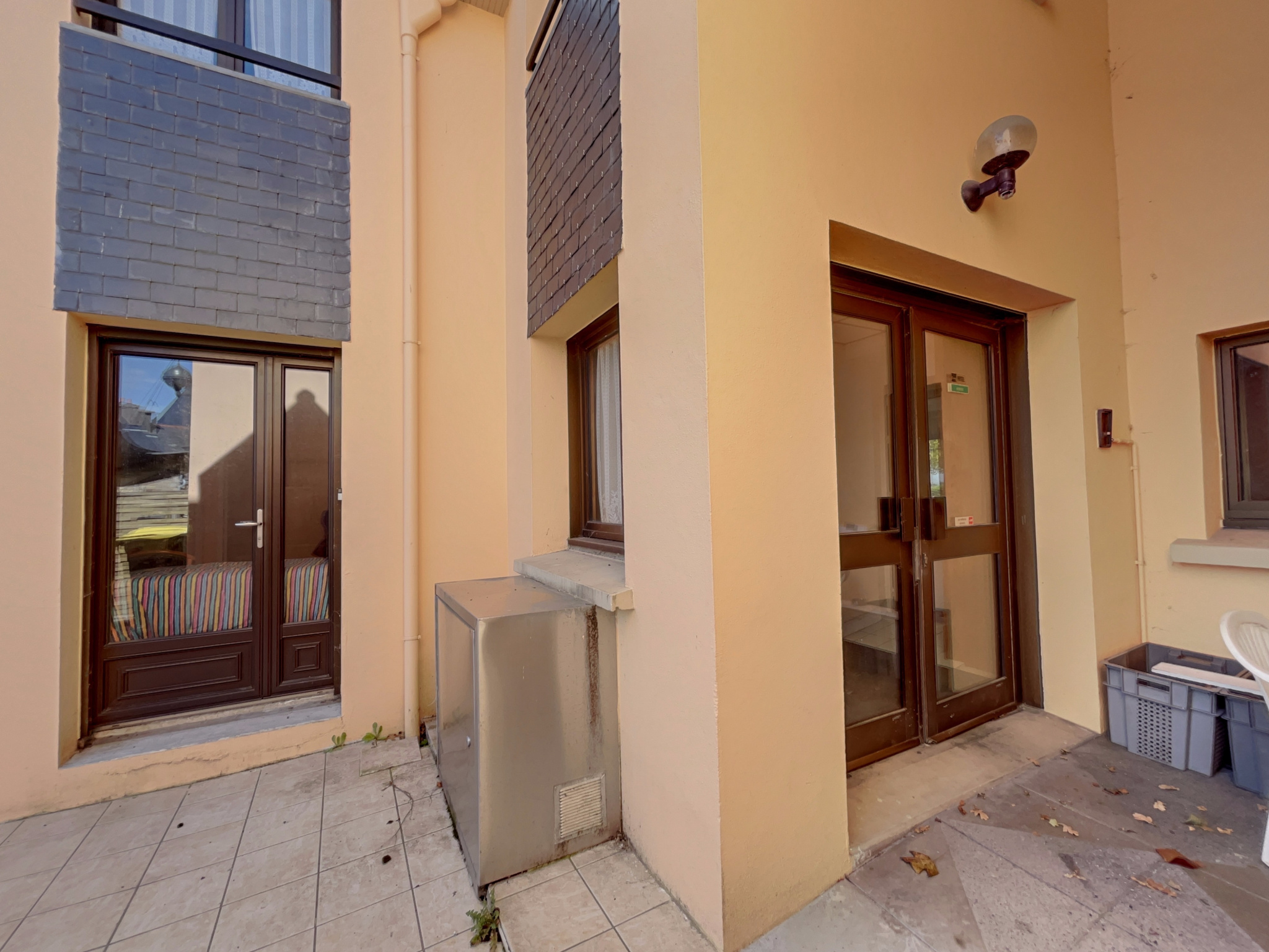 Logement no2 (rez-de-chaussée, entrée indépendante) : Séjour avec cuisine ouverte, deux celliers, une salle de bains avec WC, une chambre. Terrasse privative et une cour. Actuellement loué 520EUR par mois.