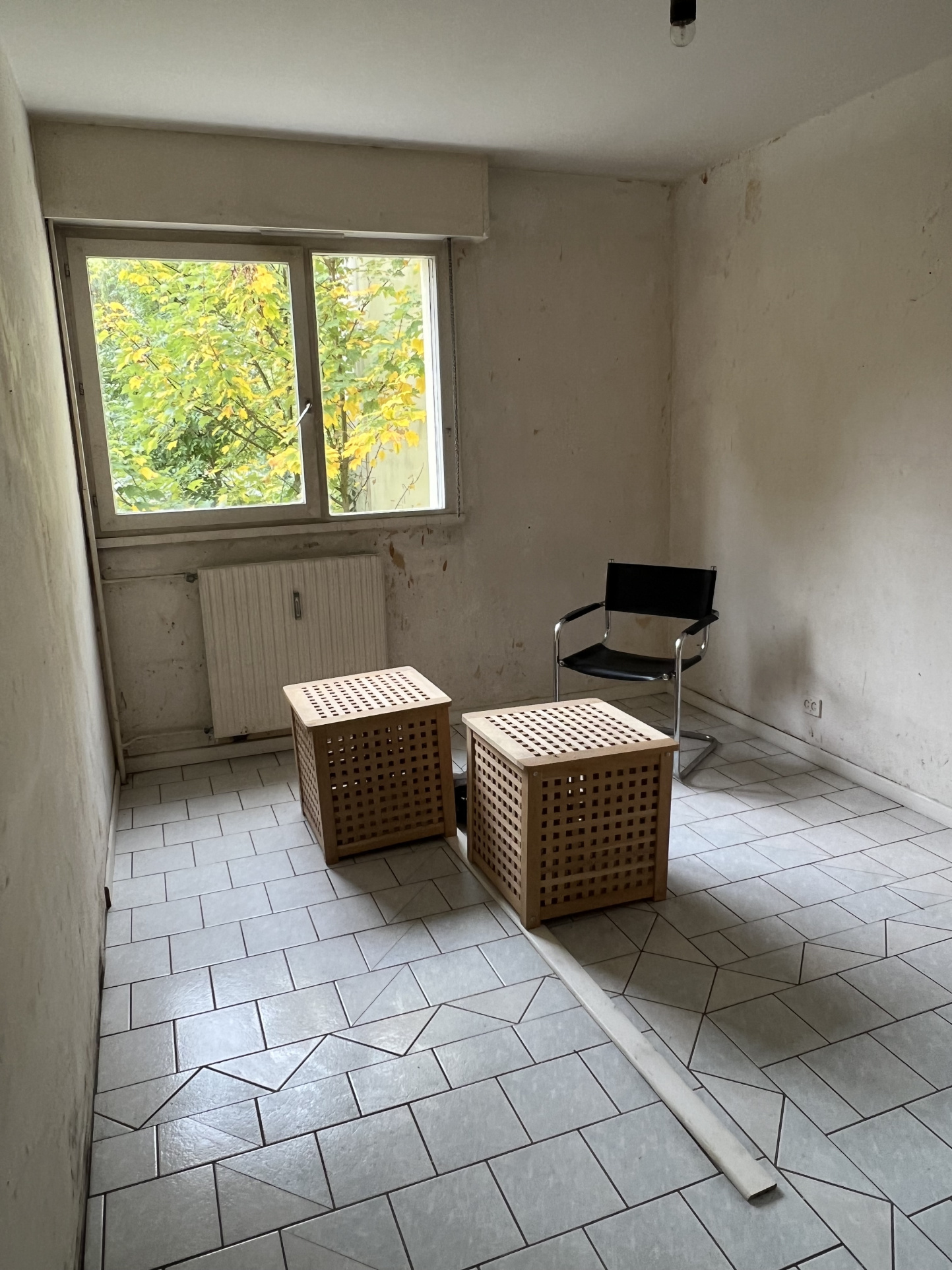 L'appartement se compose d'une entrée avec grand placard, d'un séjour de 15 m2 orienté SUD, offrant une vue dégagée sur un parc verdoyant, une cuisine équipée, attenante au séjour.