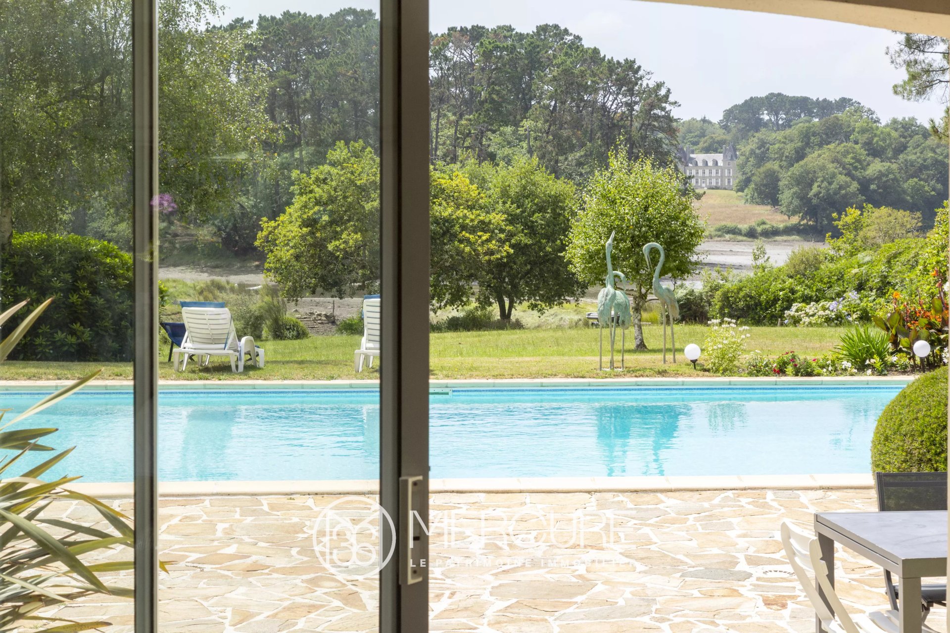 Dans une boucle de l’Odet, sur la rive gauche, ensoleillée, propriété sur un vaste ensemble foncier d’environ 15ha planté de beaux arbres, avec un accès direct à l’eau. Ce site magnifique et totalement préservé enserre la maison d'environ 400m² édifiée à proximité de la rive, elle jouit d’une superbe vue sur l’Odet, changeant au gré des marées.
