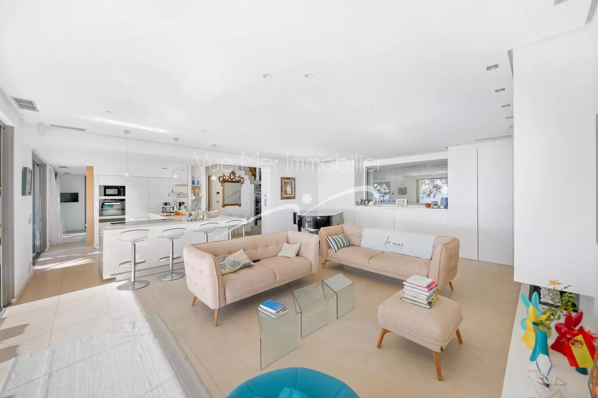 Cette villa contemporaine avec le charme authentique d'une provençale ( pierres sèches. tuiles romanes...). située au bord de l'eau à Saint-Clair. vous offre une expérience inoubliable. Les grandes baies vitrées s'ouvrent sur des terrasses en bois ou en pierre. prolongeant l'espace de vie vers la piscine chauffée. miroir et à débordement. Si vous êtes en quête de couleurs. de luminosité. de nature. et amoureux de la méditerranée. cette propriété est faîte pour vous.