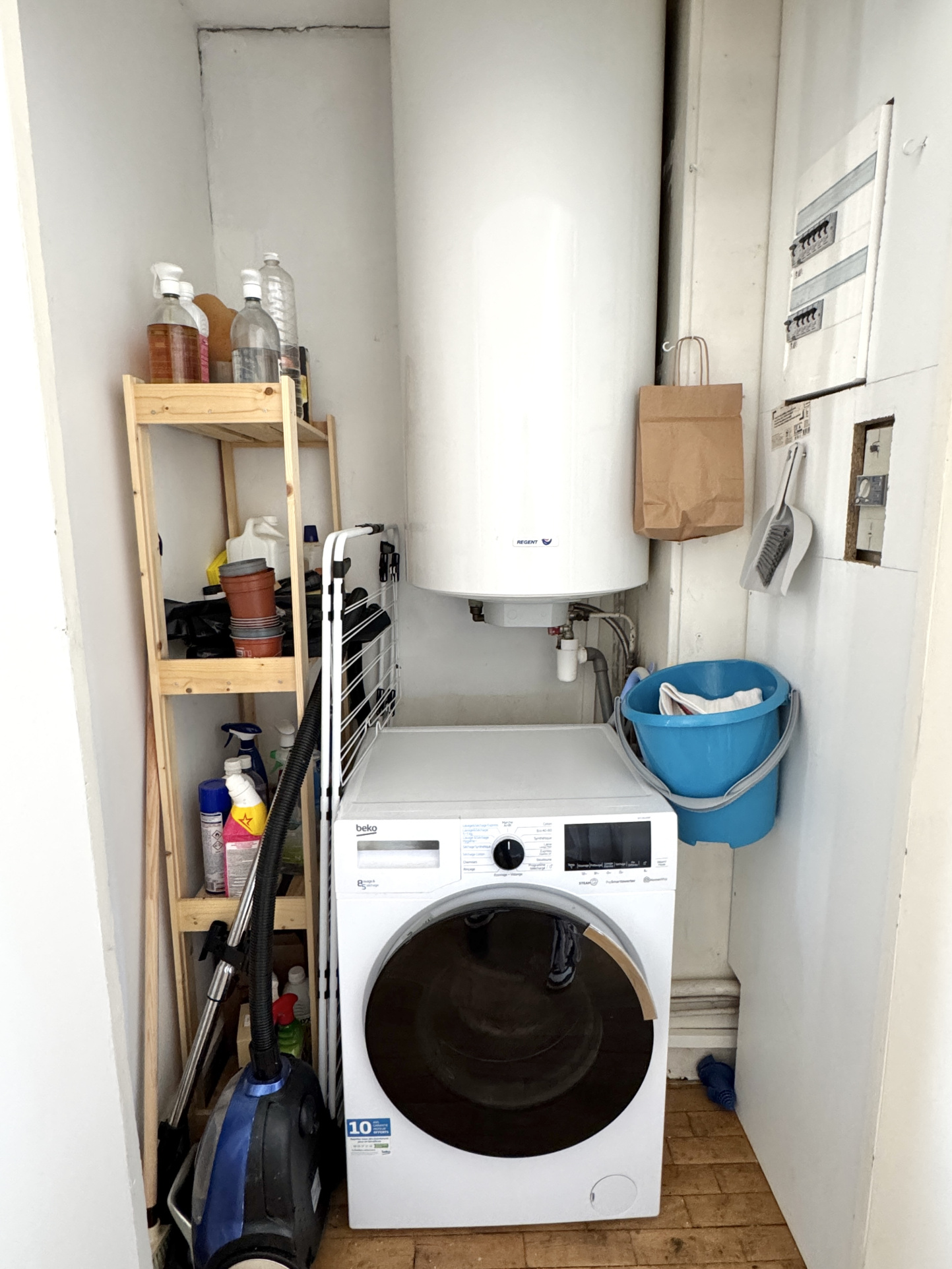 Il se compose d'un séjour avec parquet s'ouvrant sur une cuisine aménagée et équipée, une salle d'eau rénovée, une grande chambre de 13m2 avec dressing, un espace buanderie et un placard. Les fenêtres sont en PVC double vitrage et le chauffage est assuré par une chaudière gaz collective. Les charges de copropriété s'élèvent à 1967 euros par an, incluant l'eau et le chauffage. La taxe foncière est de 1039 euros. Une cave complète ce bien.