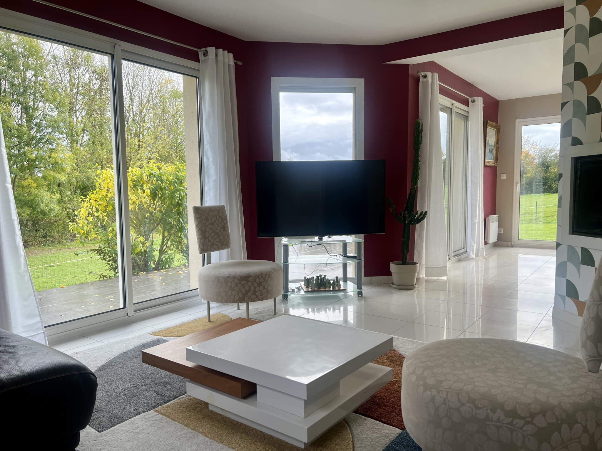 Découvrez cette agréable maison familiale construite en 2008, offrant 157m2 habitables sur un terrain de plus de 1,5 hectare. Le rez-de-chaussée propose une cuisine fonctionnelle, un salon chaleureux équipé d'un insert à bois, et une salle à manger conviviale, le tout avec une vue imprenable sur la nature grâce à ses grandes ouvertures. Une chambre et une salle d'eau complètent ce niveau, idéal pour profiter d'une vie de plain-pied.