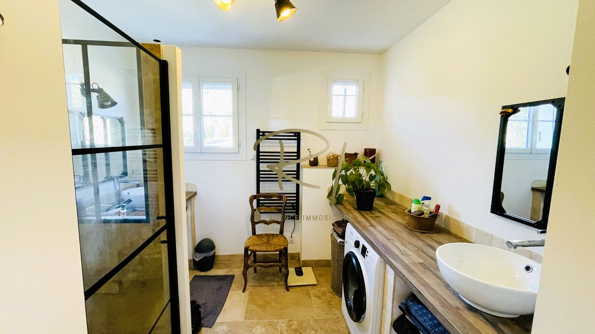 Chauffage par climatisation réversible, poêle à bois dans le séjour, une belle terrasse couverte grand sous-sol et garage indépendant.