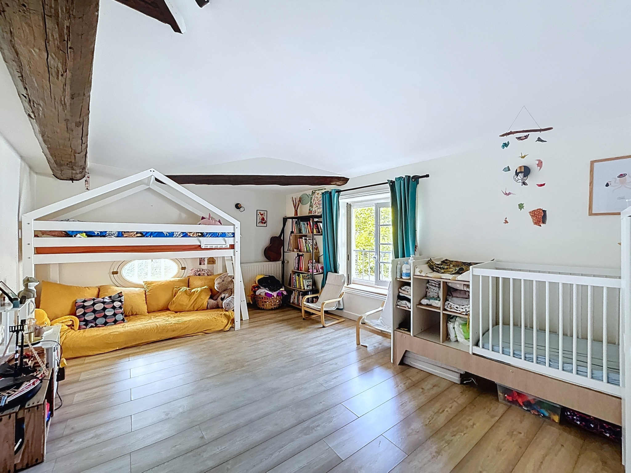 L'espace nuit propose une belle chambre parentale avec rangements, une grande chambre enfant avec placards intégrés, ainsi qu'une salle de bain dotée d'une double vasque et d'une baignoire.