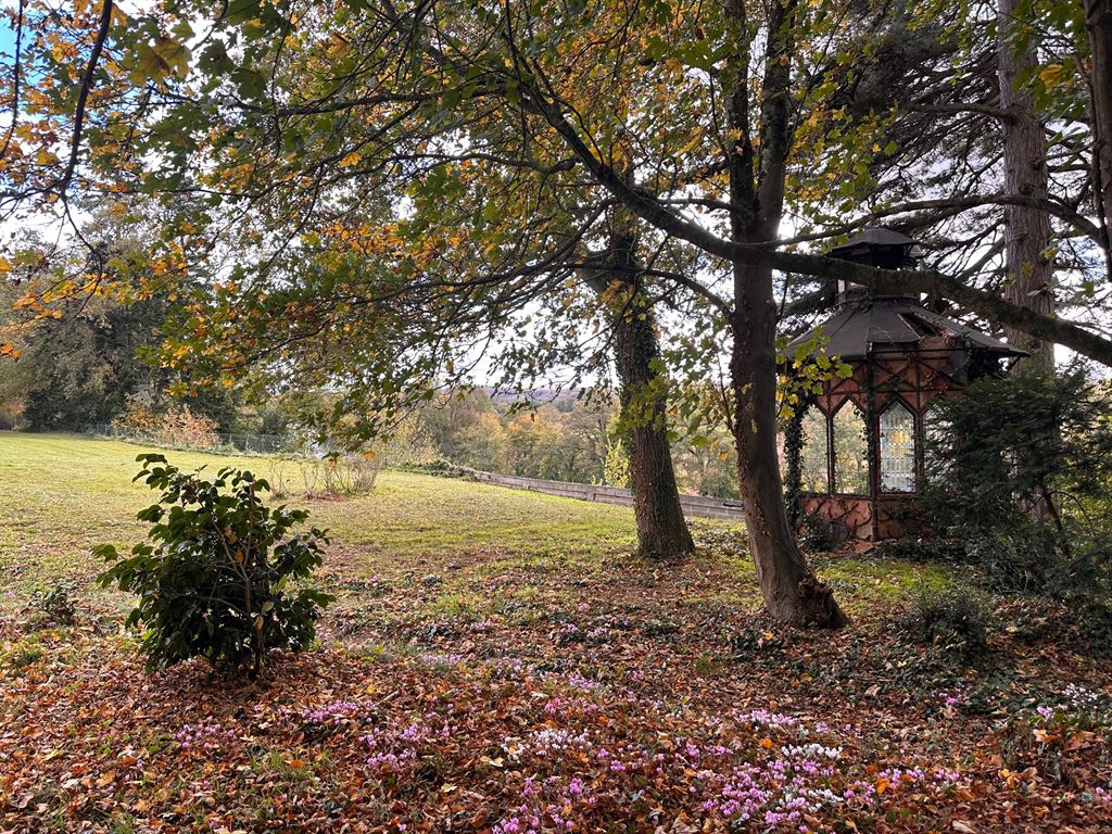 Le parc agrémenté d’arbres séculaires déploie des prairies et de belles perspectives sur la nature environnante.