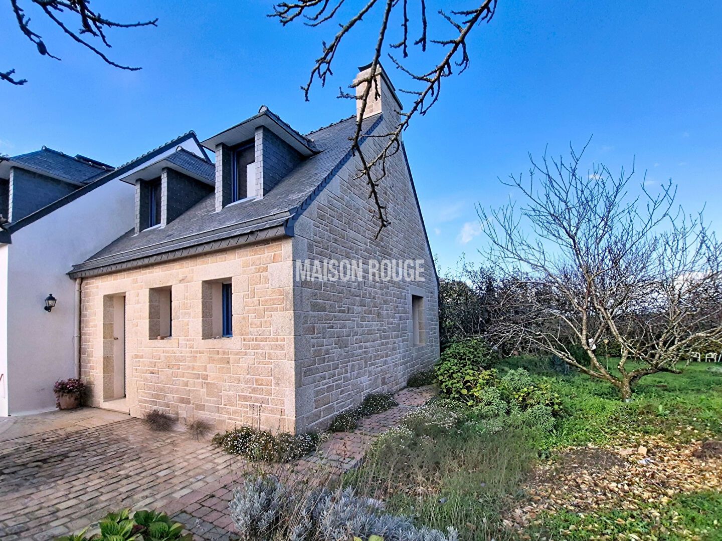 Dans un environnement calme où se mêlent la campagne et la mer, tout dans ce bien invite à profiter de l'extérieur. Son terrain d'environ 1500 m² planté d'arbres fruitiers, ces espaces de rangement et de stockage mais aussi la vue dégagée qu'on peut apercevoir des fenêtres.