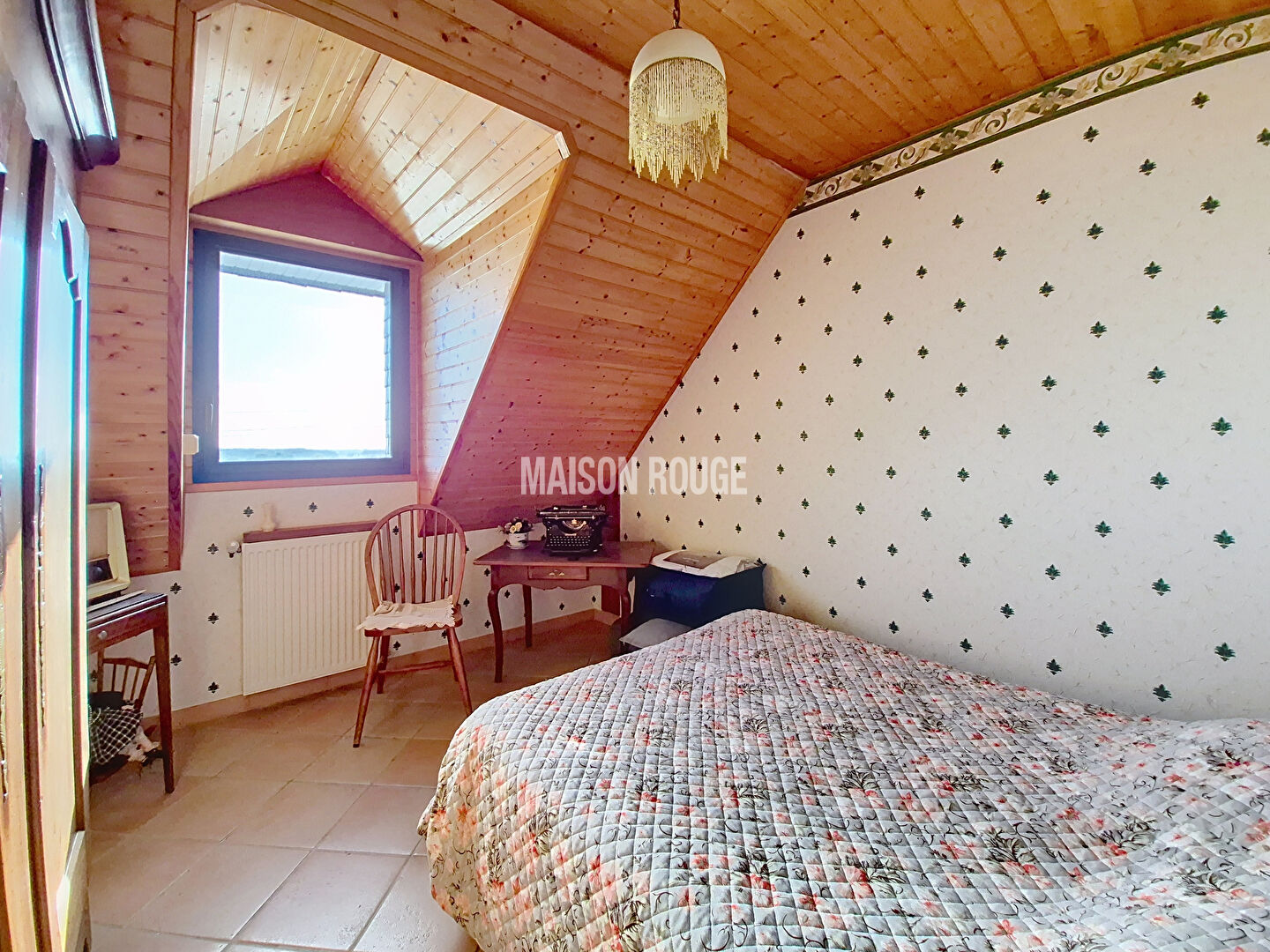 A l'étage : 3 chambres, salle d'eau, wc et grenier