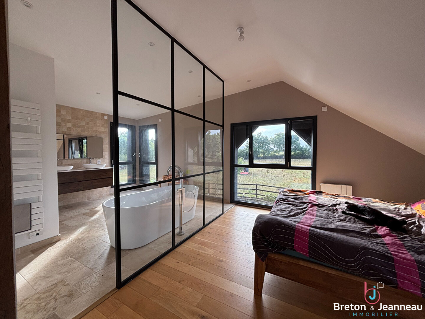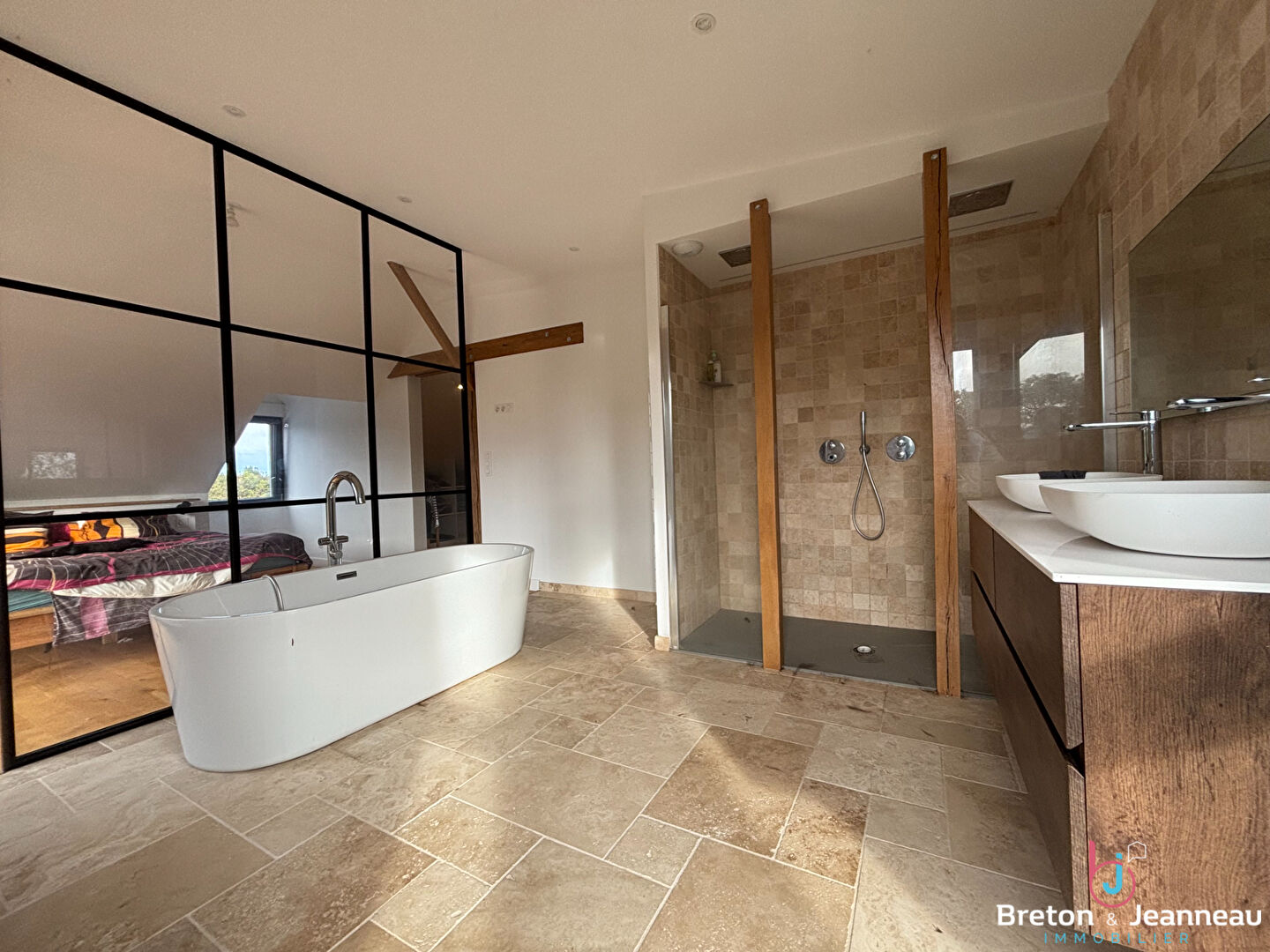 À l'étage, trois chambres dont une magnifique suite parentale, toilettes.