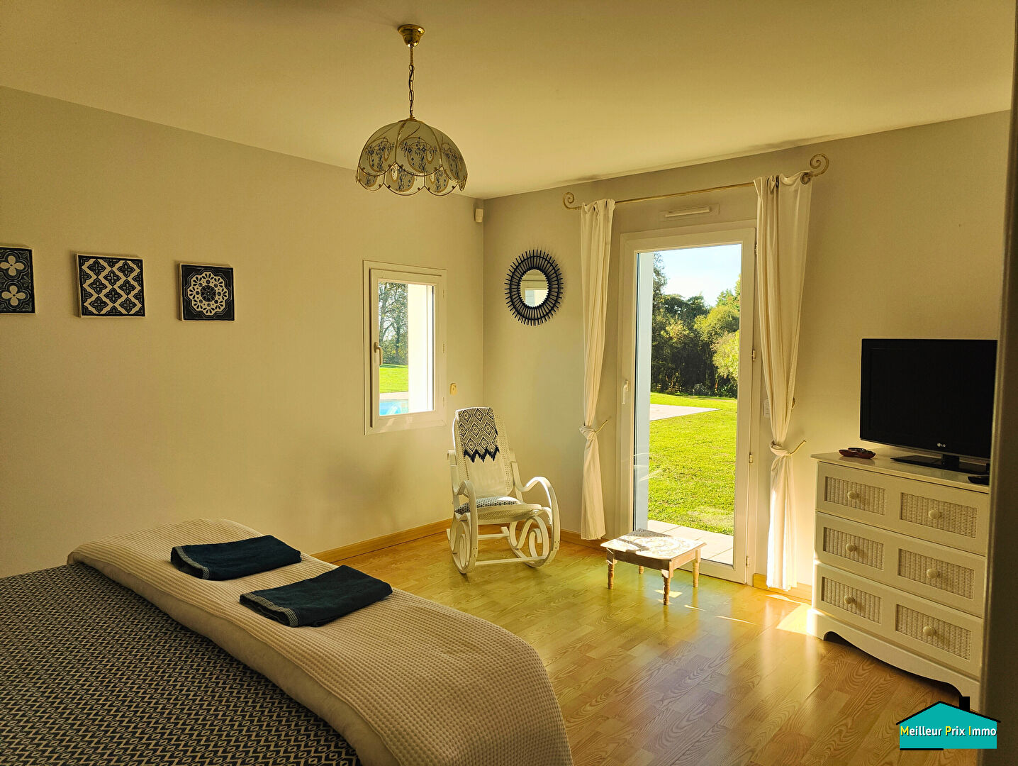 À l'extérieur, une terrasse ensoleillée, un espace piscine à l'abri des regards et un chalet bien-être équipé d'un jacuzzi, d'un coin kitchenette et d'une salle d'eau, une dépendance, un terrain de boules et un étang, le tout sur une parcelle de 13365 m² !