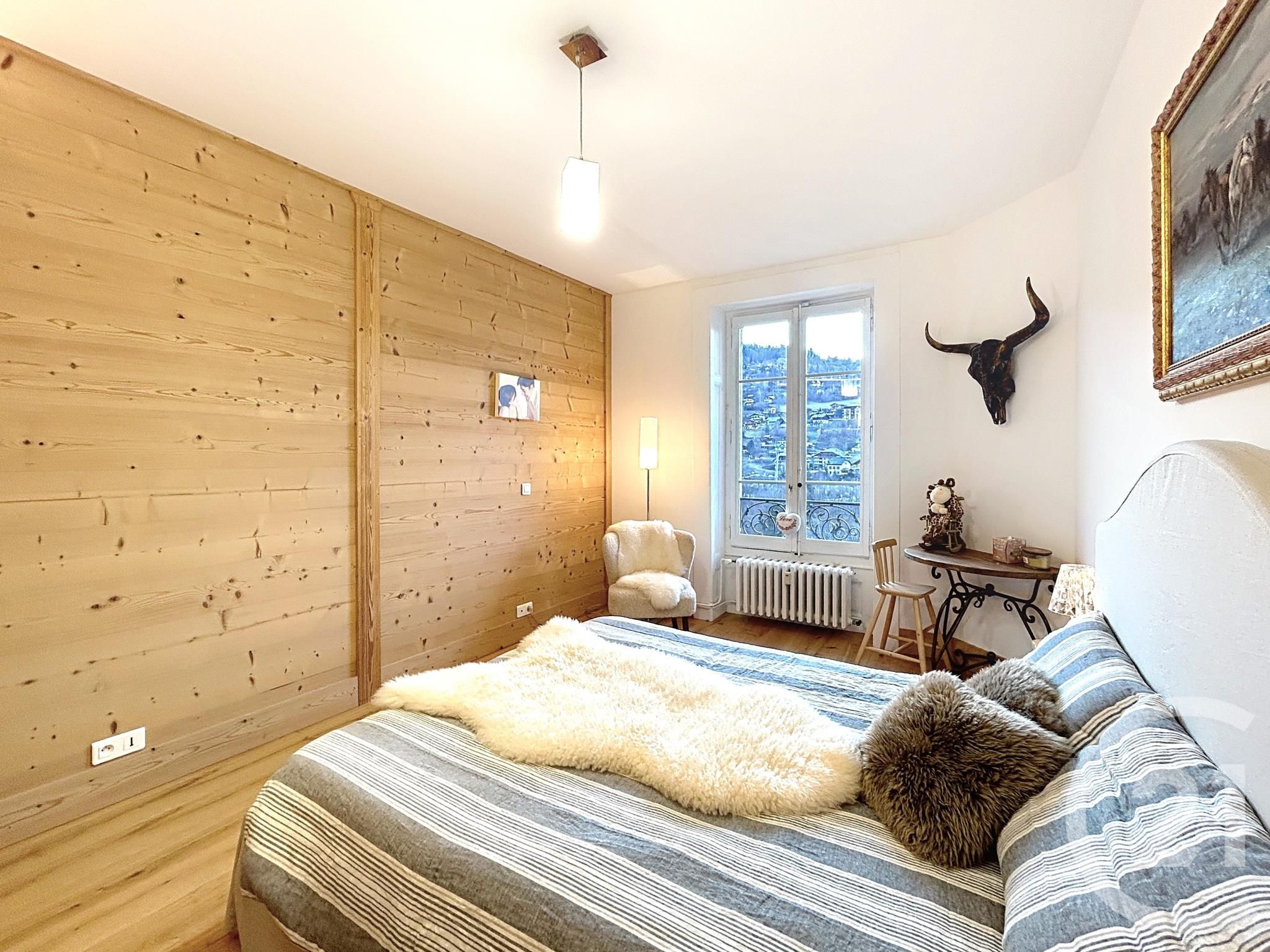 SAINT GERVAIS MONT BLANC, en plein c½ur du village de Saint Gervais, venez découvrir cet appartement traversant de type T4 d'une surface totale de 92,23 m². Situé au 3ème étage d'une résidence historique avec ascenseur, cet appartement lumineux vous offre une magnifique vue sur chaîne des Aravis ainsi que sur la place du village. Il est ainsi composé : une entrée distribuant une salle d'eau avec WC, un séjour/ salle à manger et sa cuisine type américaine équipée et aménagée, deux chambres master avec dressing et salle d'eau, une chambre salon et un cellier.