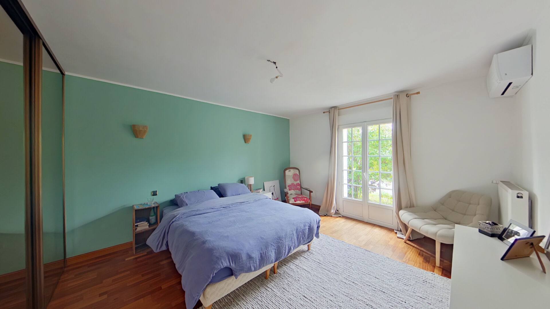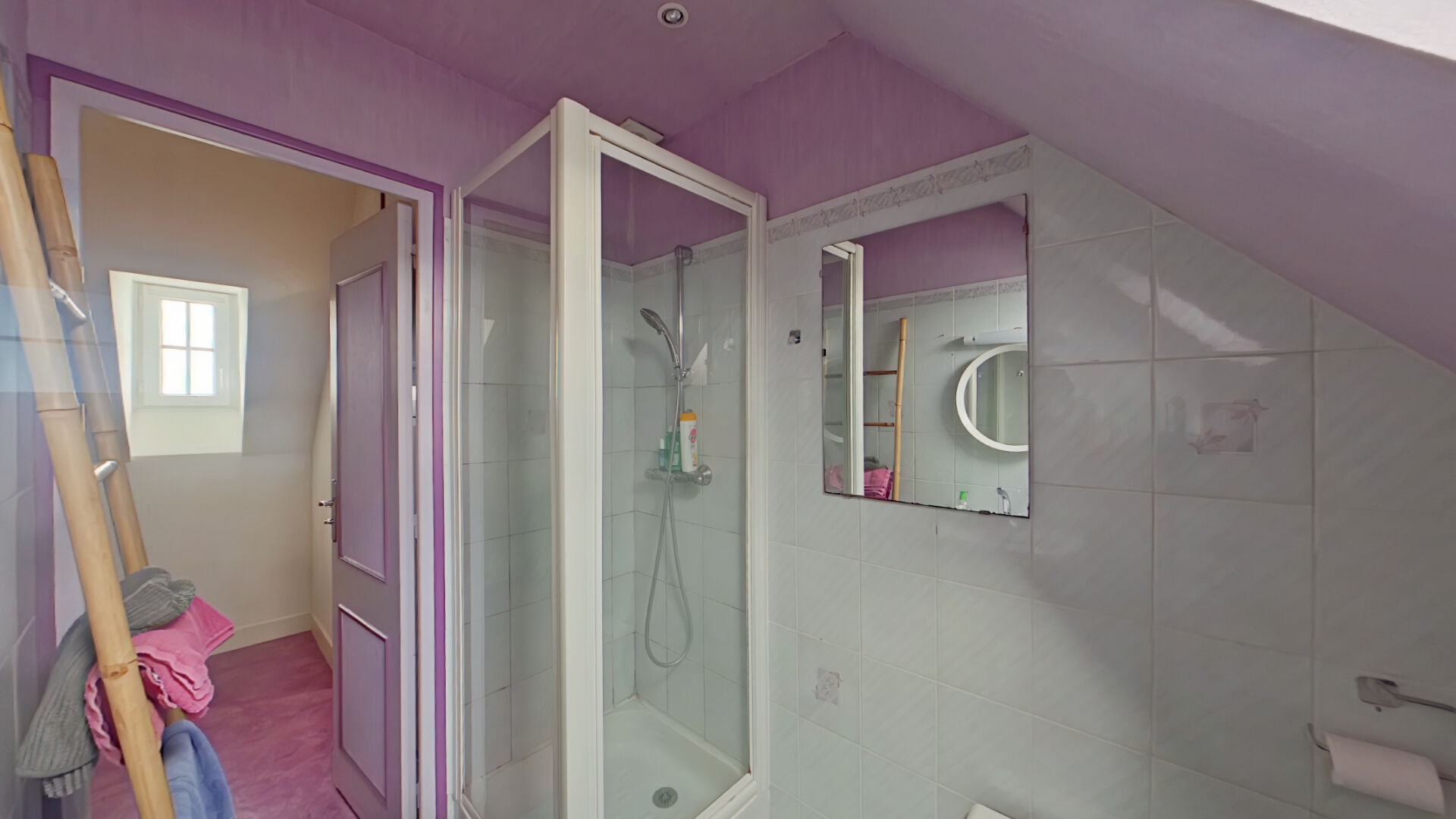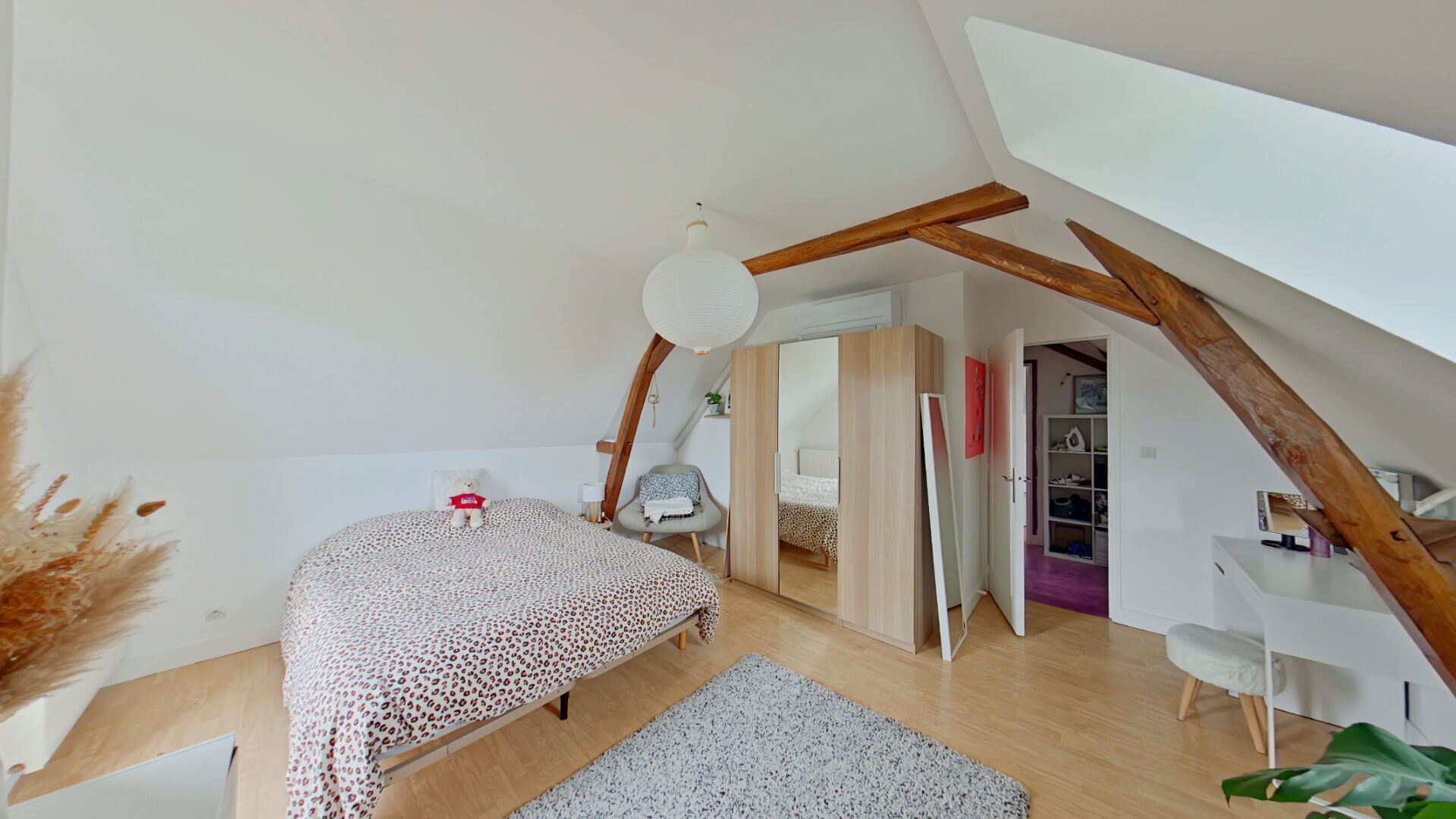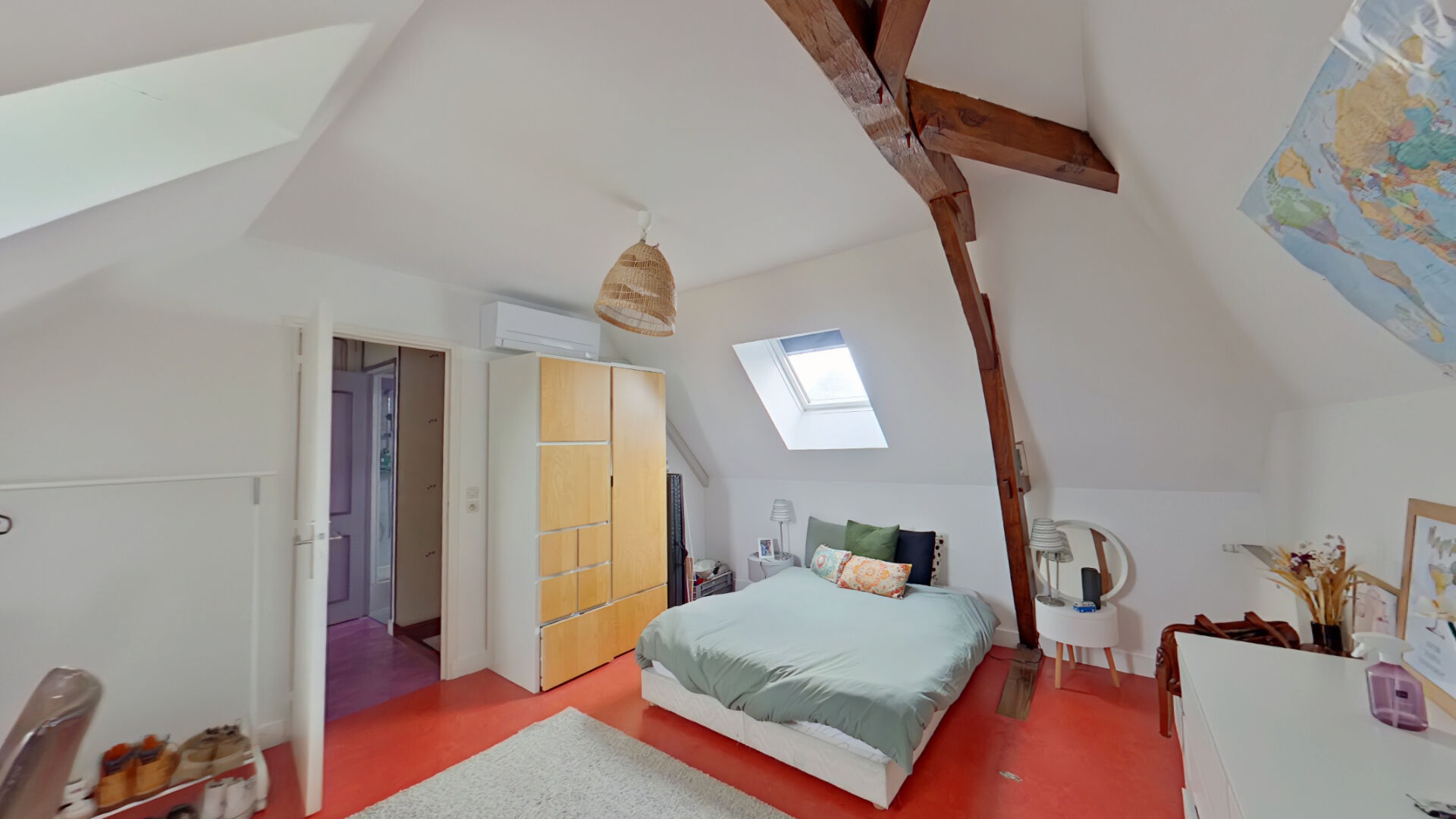 À l'étage, vous trouverez un palier, une salle d'eau avec WC et deux chambres équipées de climatisation réversible.