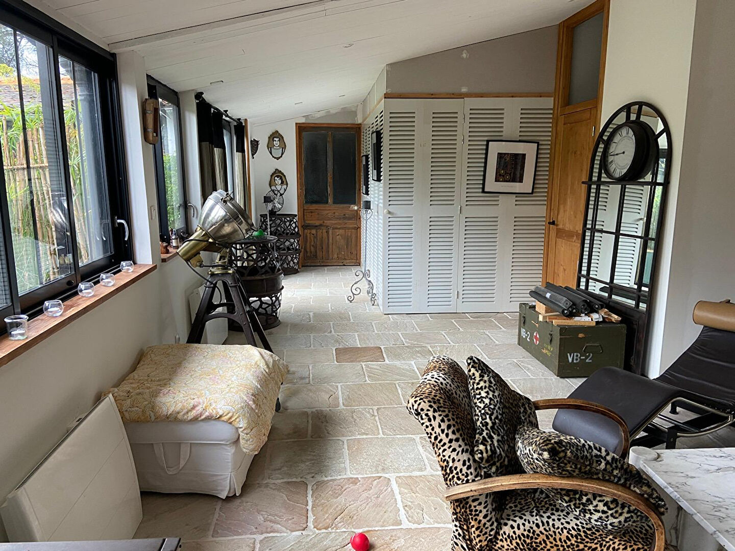Laissez-vous transporter par cette villa de plain-pied, dotée d'une piscine chauffée, qui se distingue par son atmosphère intemporelle, sa végétation luxuriante et son originalité.