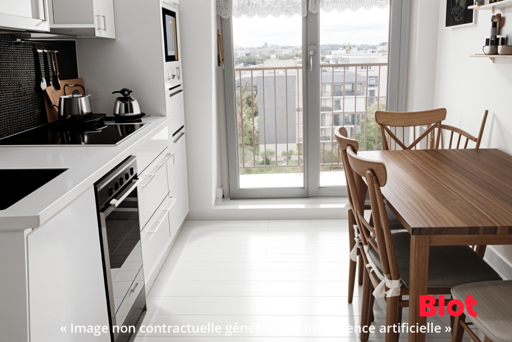 Cet appartement propose une agréable entrée, une cuisine fermée mais qui peut être ouverte sur un beau salon séjour très lumineux avec balcon.