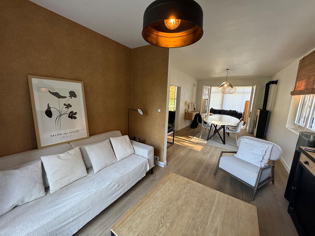 Au même niveau se trouve un grand salon séjour dans le prolongement de cette véranda. 2 Belles chambres lumineuses, une salle de douche et un toilette séparé.