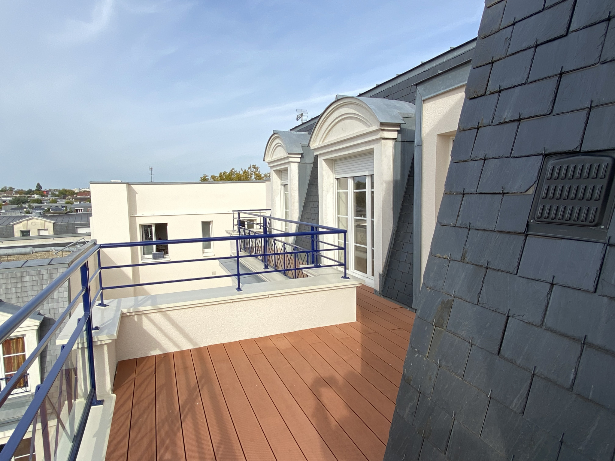 EXCLUSIVITE : A DEUX PAS DU CENTRE-VILLE, DU MARCHE ET DES COMMODITES, DANS UNE BELLE RESIDENCE DE 2000 ENTIEMEMENT RAVALEE, VENEZ VISITER CE BEL APPARTEMENT TRAVERSANT (86,84 m2 carrez et 91,19 m2 utiles), LUMINEUX SITUE AU 4e ET DERNIER ETAGE AVEC ASCENSEUR ET TERRASSE (17m2), composé comme suit : entrée avec rangement, cuisine, séjour ouvrant sur terrasse exposée Ouest avec vue dégagée, dégagement desservant des toilettes avec lave-mains, une salle d'eau, trois chambres chacune avec placard, une salle de bains avec toilettes.