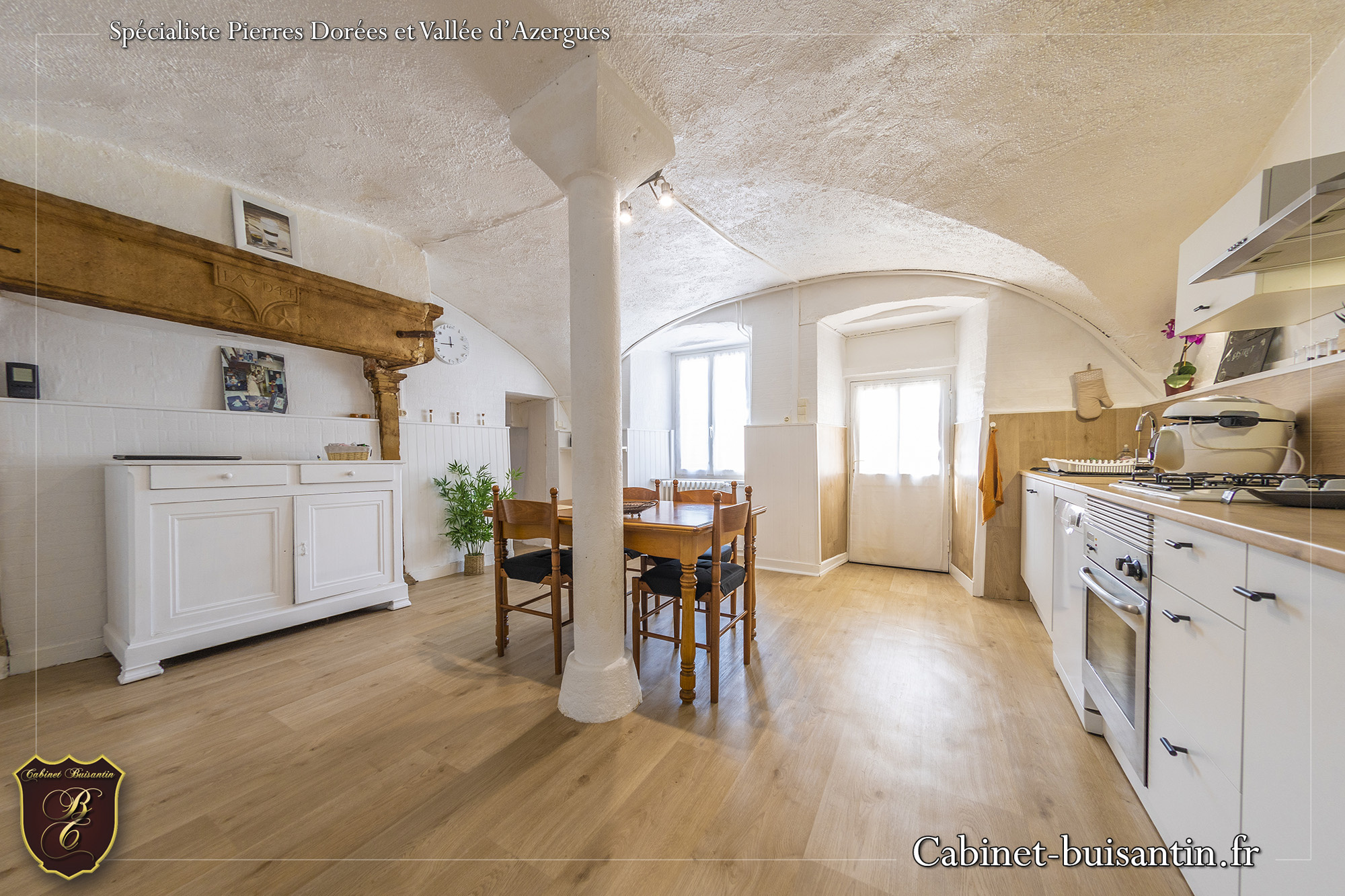 EXCLUSIVITE - ST LAURENT D'OINGT - Située dans un hameau, Bâtisse en pierres et pisé d'environ 147 m2 habitables composée de 2 habitations. L'habitation principale comprend : entrée sur cuisine équipée, séjour et wc. A l'étage : 3 chambres (2 avec rangements) et salle d'eau. La seconde habitation comprend séjour/cuisine US avec poêle à bois et à l'étage 1 chambre, bureau et salle d'eau/wc. Possibilité d'annexer le grenier de 39 m2 à cette habitation. 2 garages (59 et 32 m2), une buanderie et une cave voûtée complètent ce bien. Le tout sur un terrain d'environ 848 m2 avec espace de stationnement sur la partie haute.