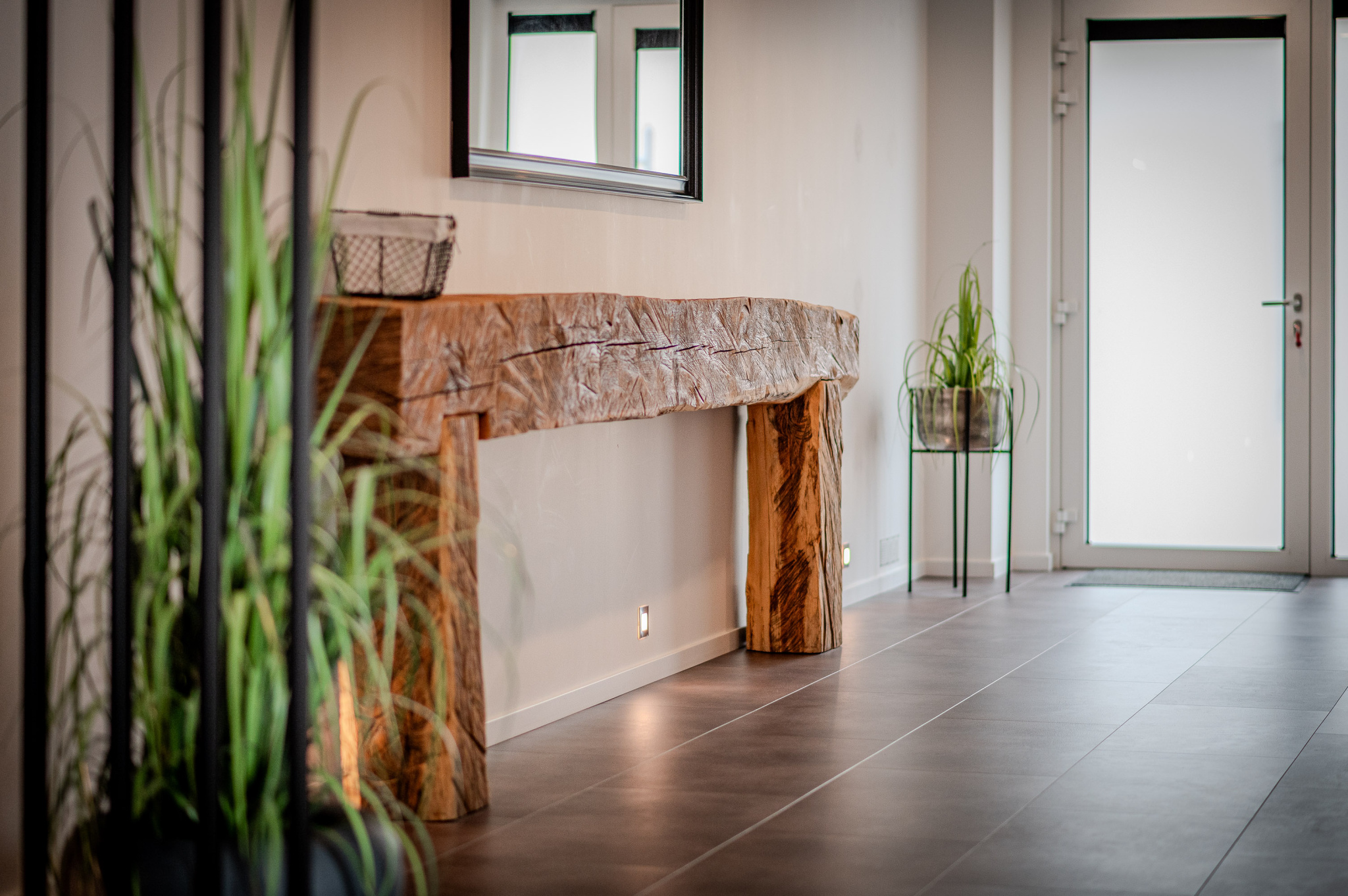 L'entrée de la maison est équipée de placards et rangements réalisés sur mesure.