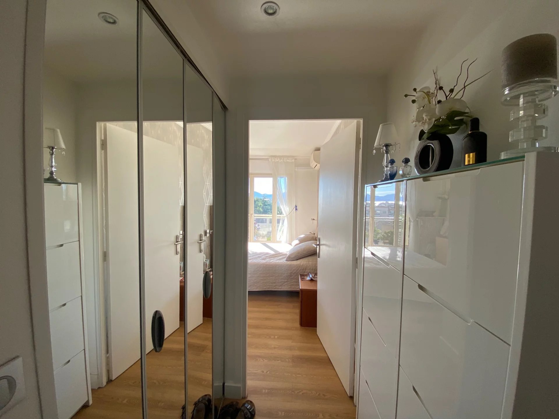 Situé dans une petite résidence calme, à quelques minutes à pied de la Croisette, cet appartement 3 pièces de 74 m² offre une belle vue dégagée sur la mer.