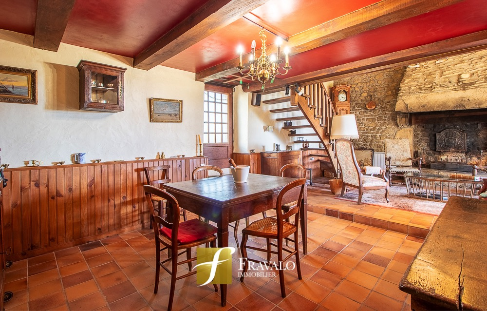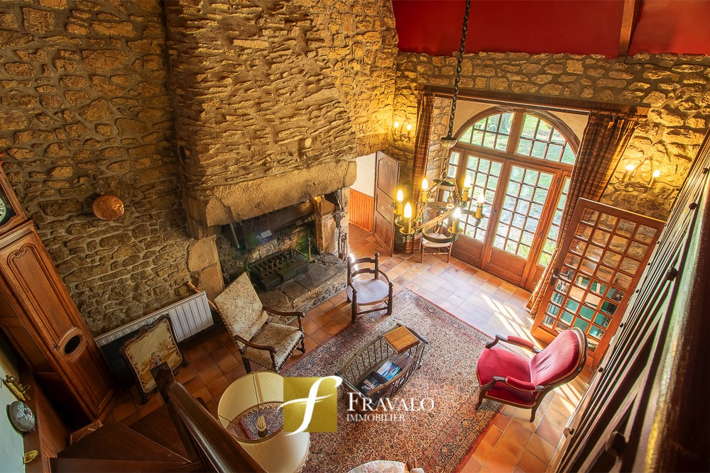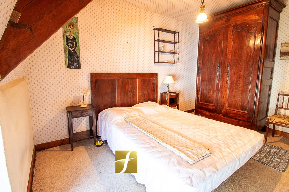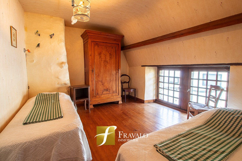 Située dans un village classé au patrimoine, cette authentique chaumière bretonne d'environ 142m2 offre le charme de la pierre et du chaume dans un cadre paisible et verdoyant. Elle se compose de deux habitations communicantes. La première partie comprend une entrée, un séjour avec cheminée, une cuisine, une salle de bains, un wc et avec trois chambres à l'étage. La deuxième partie dispose d'un séjour, d'une cuisine, d'une chambre et l'étage de deux chambres et d'une salle d'eau avec wc. Une dépendance de 18m2 et un beau terrain d'environ 1200m2 complètent l'ensemble. Estimation des coûts annuels d'énergie pour un usage standard du logement: entre 3290 EUR et 4500 EUR (abonnement compris). Logement à consommation énergétique excessive: F. Les informations sur les risques auxquels ce bien est exposé sont disponibles sur le site Géorisques : georisques.gouv.fr