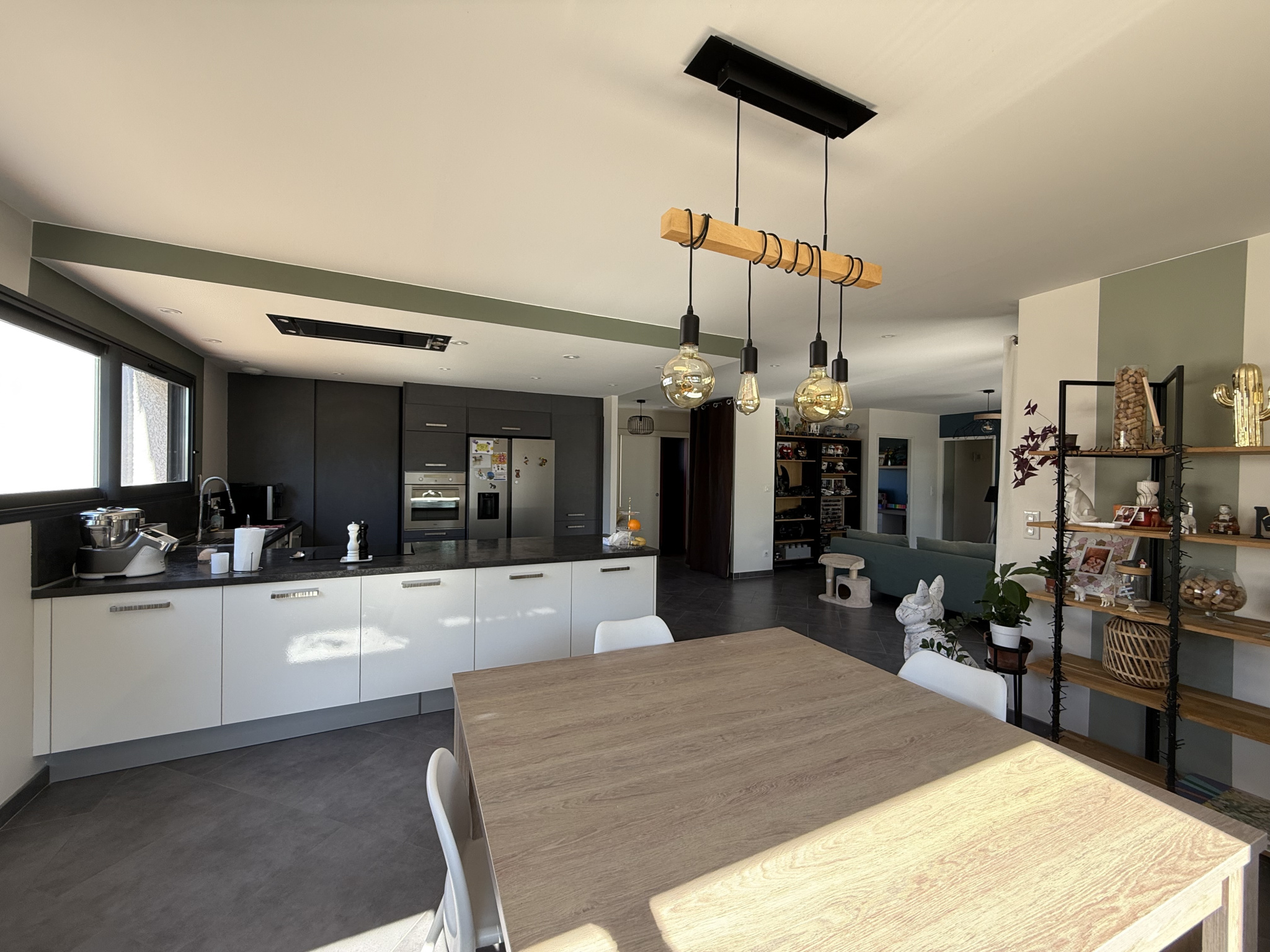 Située dans un environnement calme et verdoyant, cette maison contemporaine de plain pied bâtie en 2013 offre 135m2 habitables, alliant confort moderne et luminosité.