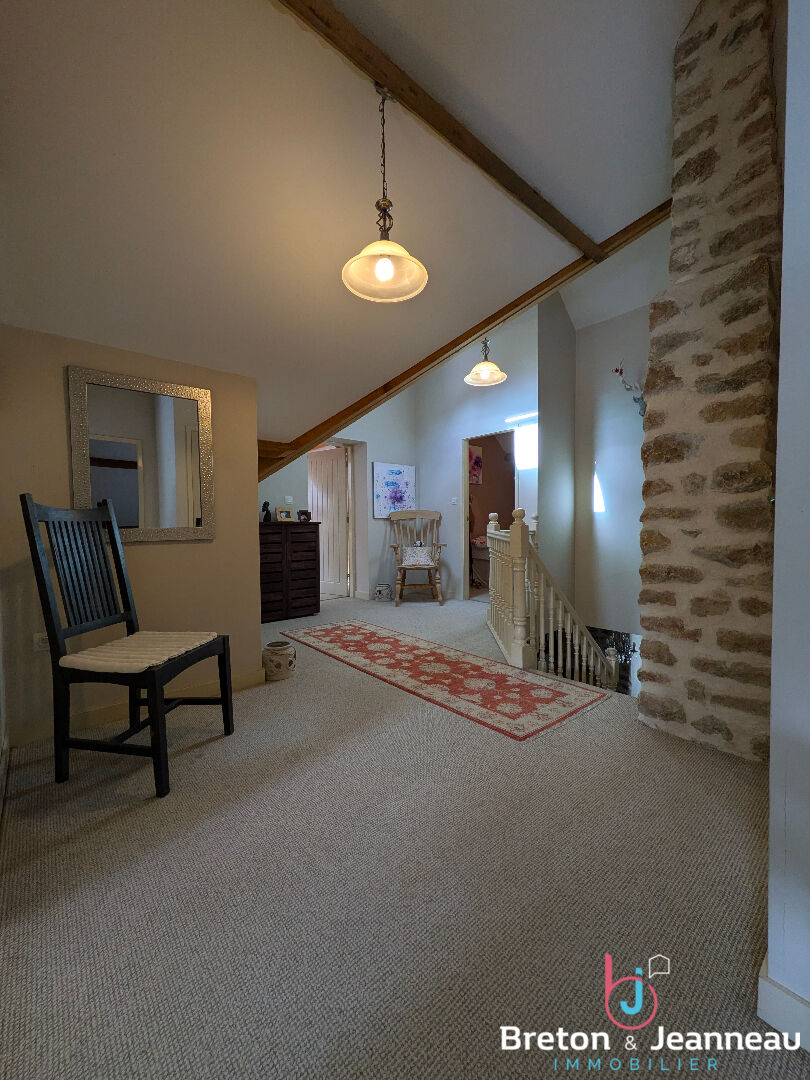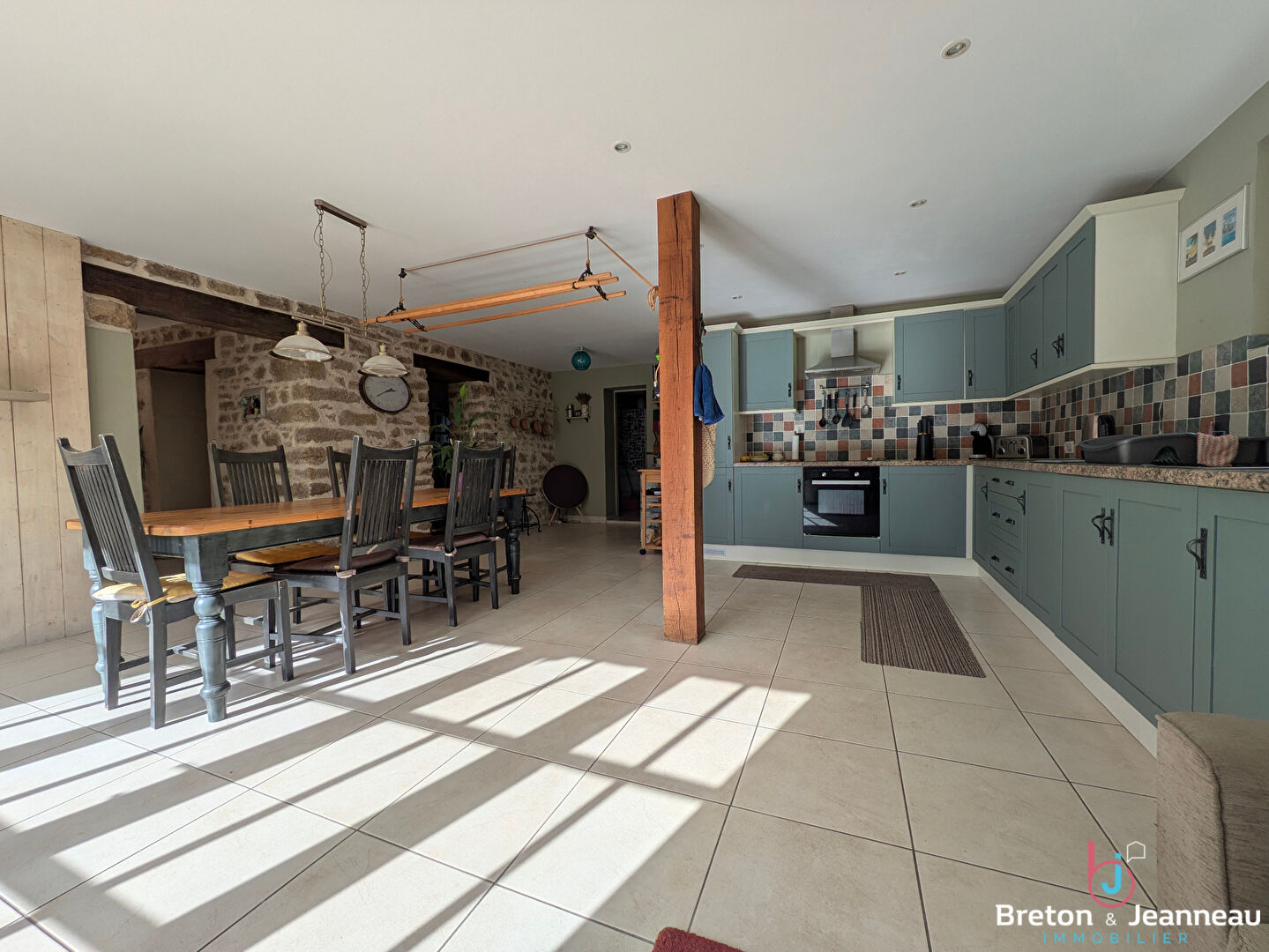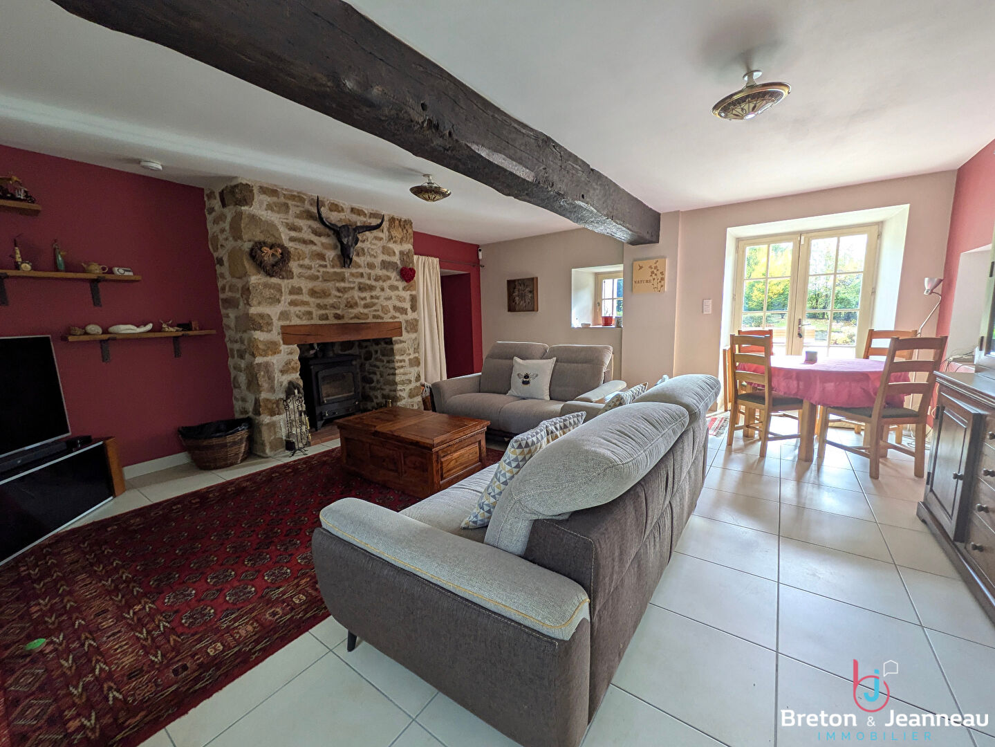 Dès l'entrée, vous serez séduits par le charme et l'authenticité de cette maison en pierre typique de la Mayenne, restaurée avec soin.
