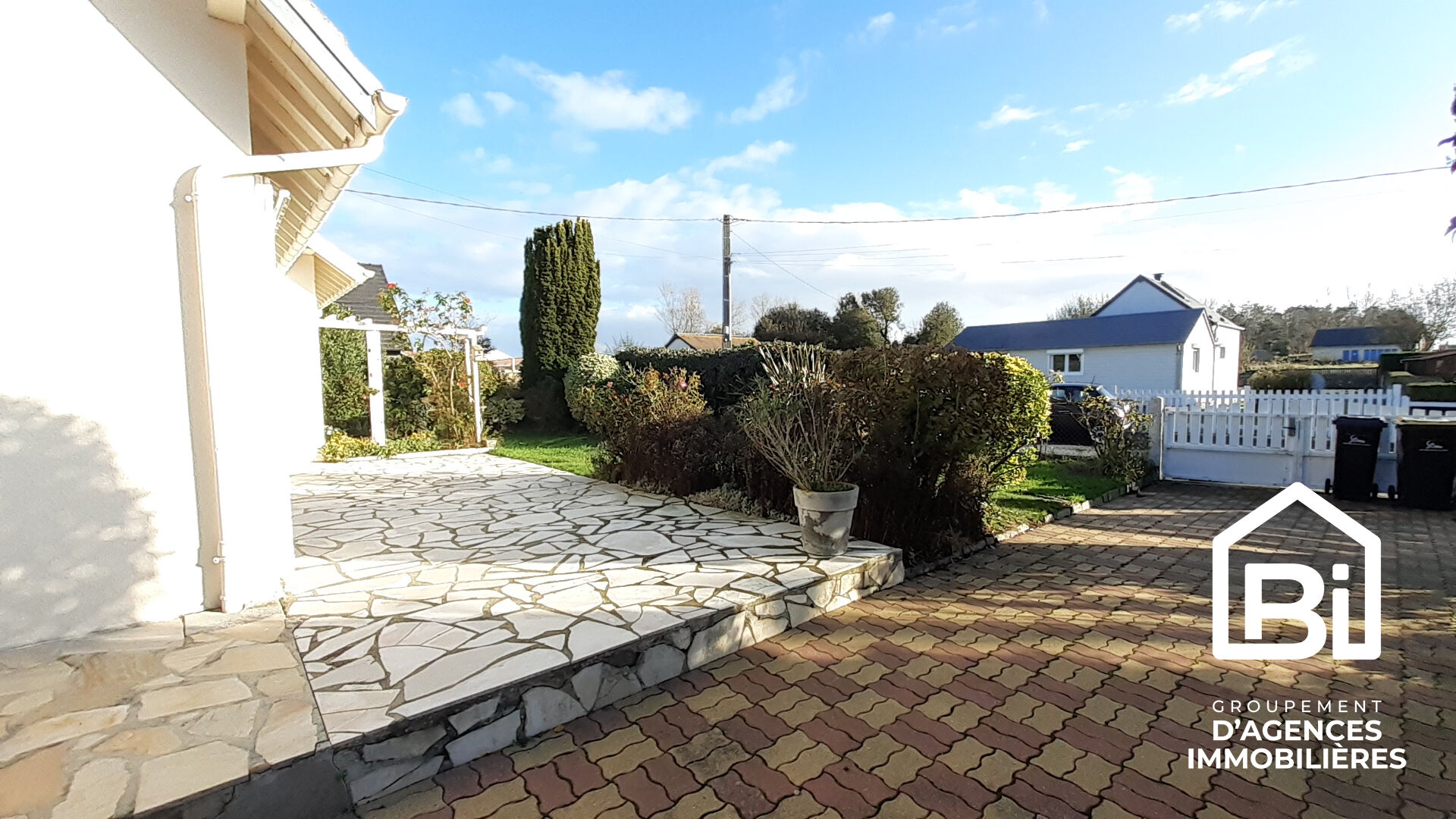 Charmant pavillon avec une vie de plain-pied composé au rez-de-chaussée d'une entrée avec placards, séjour avec cheminée, cuisine aménagée, arrière cuisine salle à manger, deux chambres, salle d'eau et WC ; à l'étage : trois chambres, salle de bains et WC ;