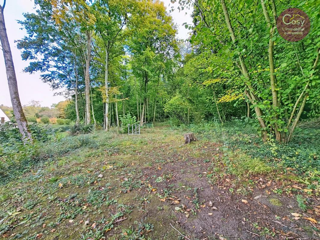 Le terrain de 2 030 m2 se déploie en plusieurs ambiances : une cour à l'avant, une grande terrasse à l'arrière -- à aménager, pourquoi pas, en solarium -- et une vue dégagée sur le village, avec la forêt en toile de fond. Une sensation de calme et de déconnexion au quotidien.