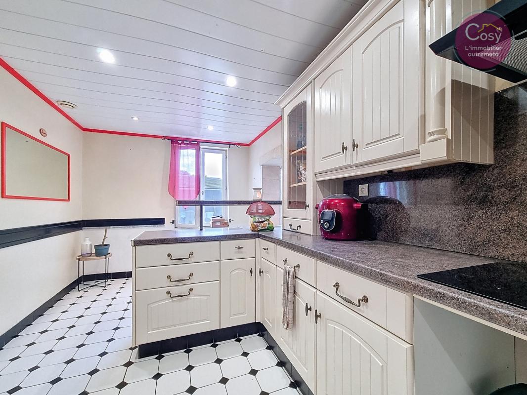 La cuisine, indépendante, est entièrement aménagée et équipée. Une buanderie attenante et une salle d'eau complètent le rez-de-chaussée, ainsi qu'un premier WC.