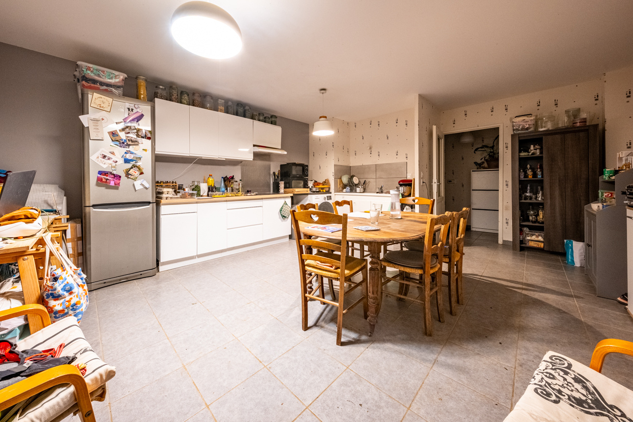 Le séjour lumineux avec cuisine ouverte s'ouvre sur une terrasse et un jardin privatif, parfaits pour profiter du calme environnant.