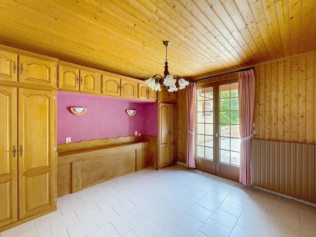 La maison est composée d'un séjour avec cuisine aménagée, une véranda d'environ 30m2 avec insert, une salle d'eau avec WC, deux chambres dont une suite parentale avec salle d'eau et WC indépendant.