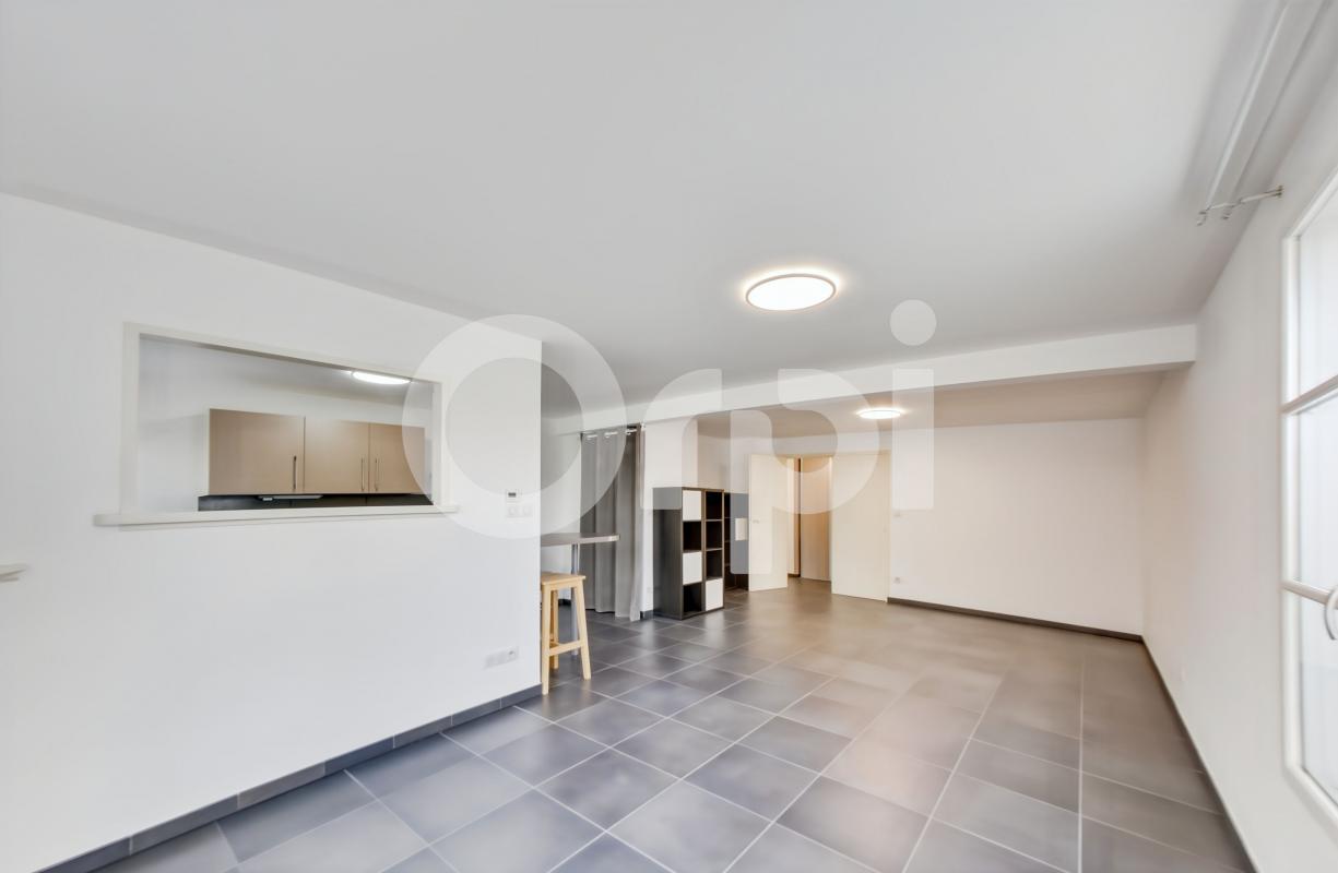 Entrée, grand séjour sur cuisine ouverte, WC, 2 chambres, salle de bains, dressing, nombreux rangements.