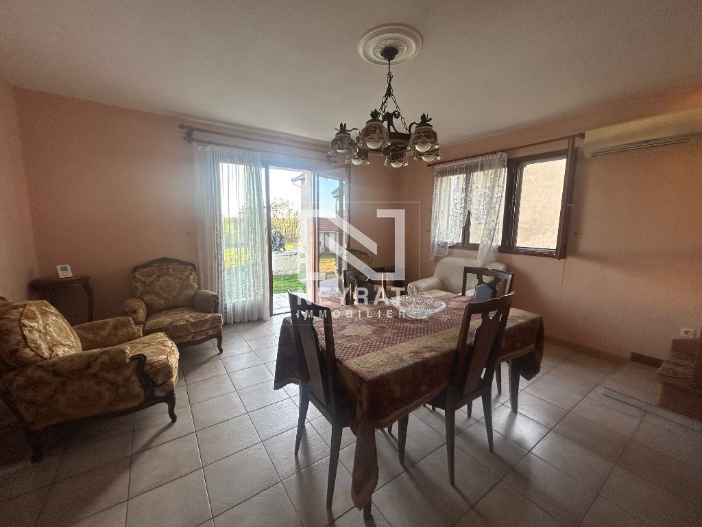 Le rez de chaussée s'ouvre sur une véranda baignée de lumière, qui invite naturellement à la détente et qui dessert une cuisine entièrement équipée, conçue pour les moments conviviaux et les repas en famille. La salle à manger spacieuse prolonge cet espace de vie, favorisant circulation et convivialité. Deux chambres confortables, une salle de bain avec WC et une buanderie complètent cet étage, proposant une organisation pratique au quotidien.