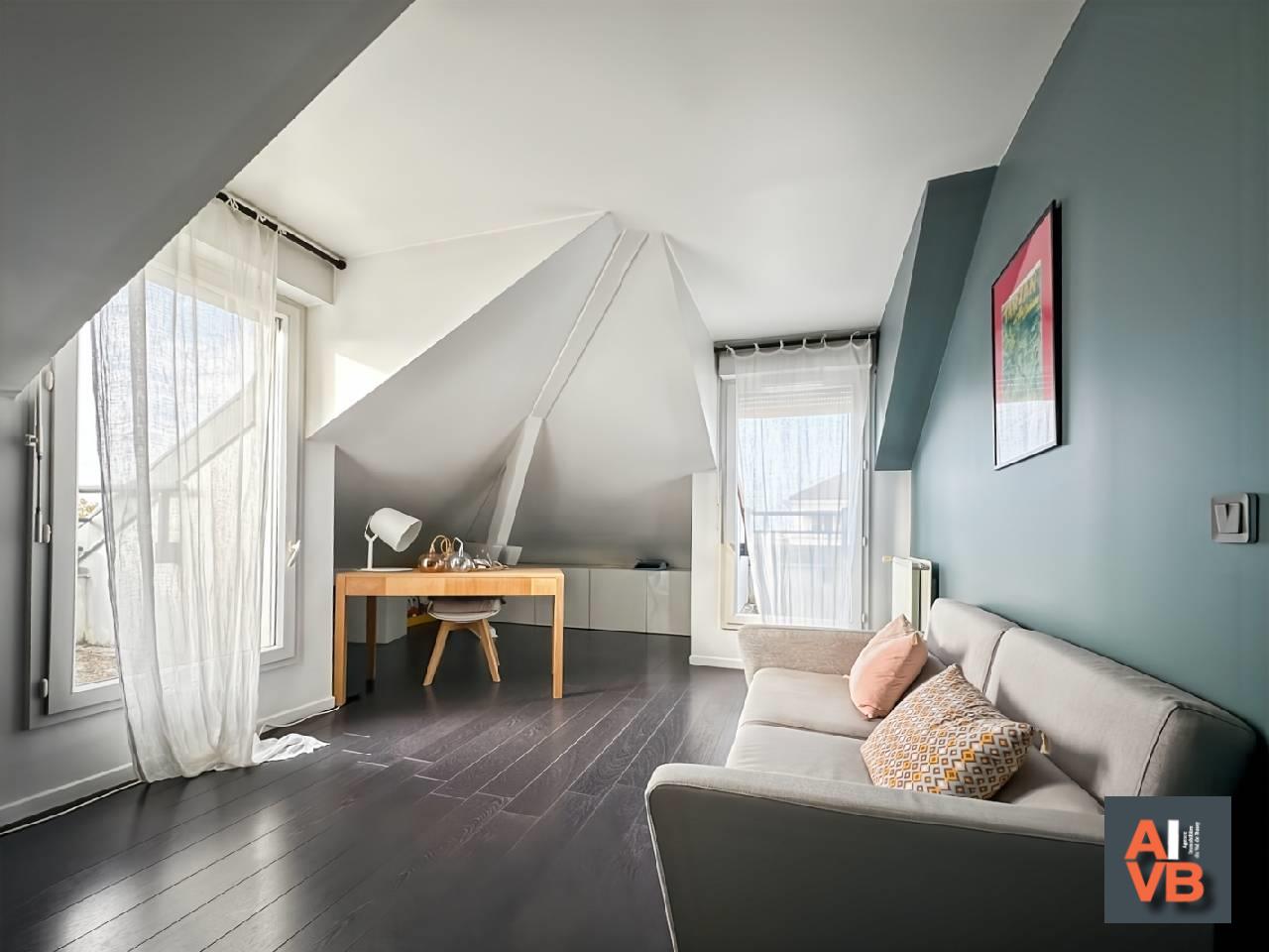 Secteur Calme et recherché, à 10 minutes à pied du RER A, Magnifique Duplex exposé OUEST et SUD en dernier Etage avec balcon et Terrasses de 70m2 habitable (91m2 utiles).