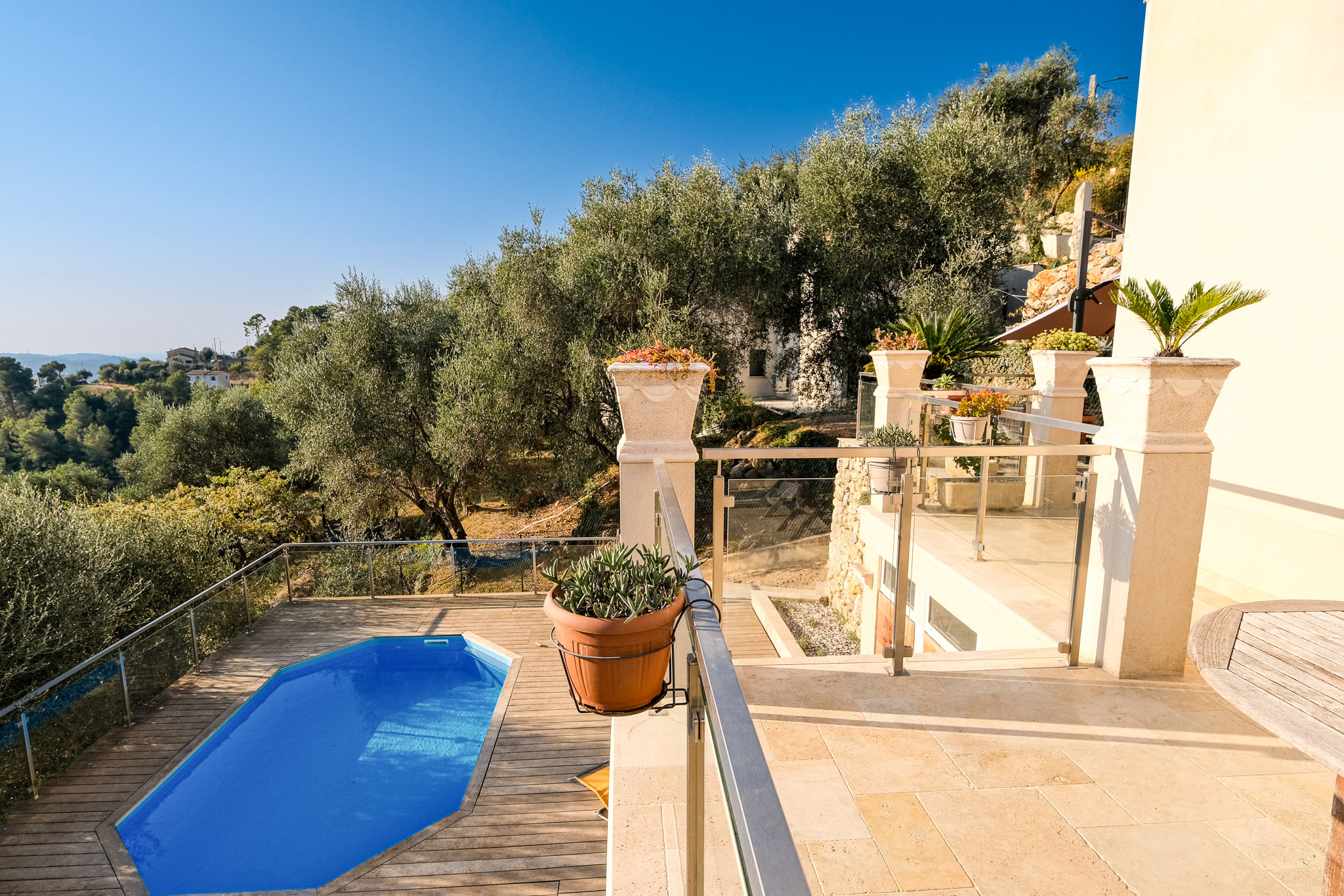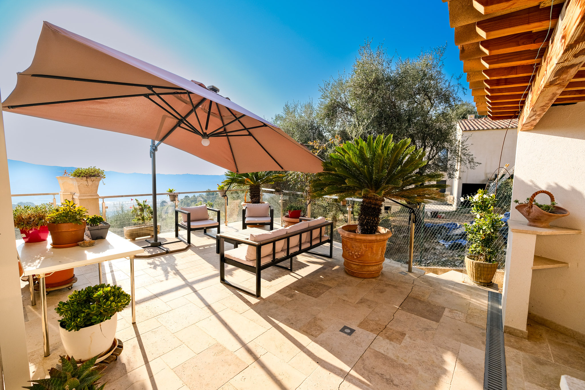 Perchée sur les hauteurs de Carros, à quelques pas du village, cette superbe villa offre une vue panoramique imprenable jusqu'à la mer et bénéficie d'une exposition plein sud, baignant chaque pièce d'une lumière naturelle exceptionnelle.
