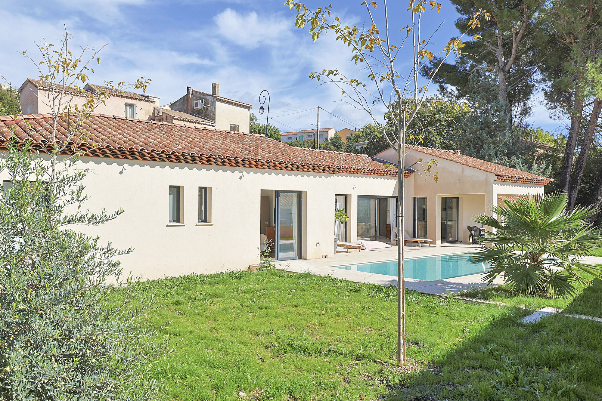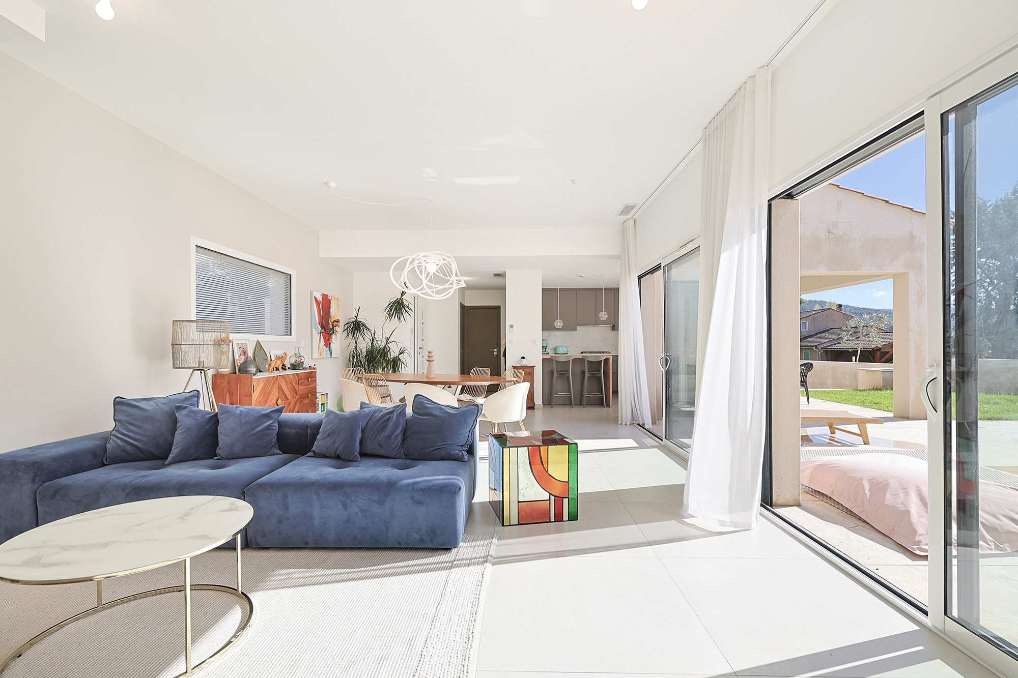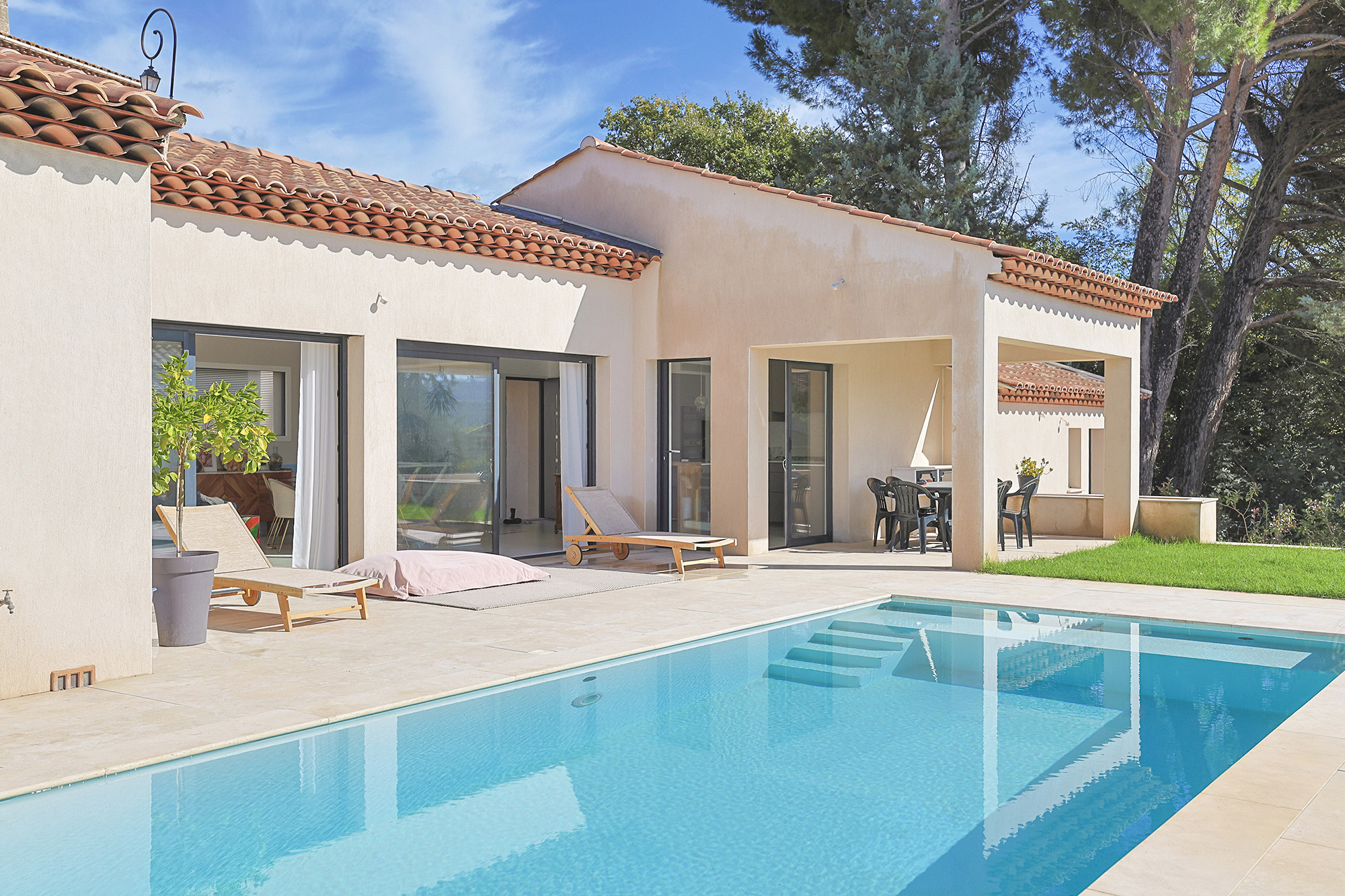 EXCLUSIVITÉ JCG IMMO : sur la commune de Pierrefeu-du-Var, retrouvez cette villa indépendante contemporaine, construite en 2021, d'une surface de 128 m2 habitables T5 avec garage sur un terrain de 890 m2.