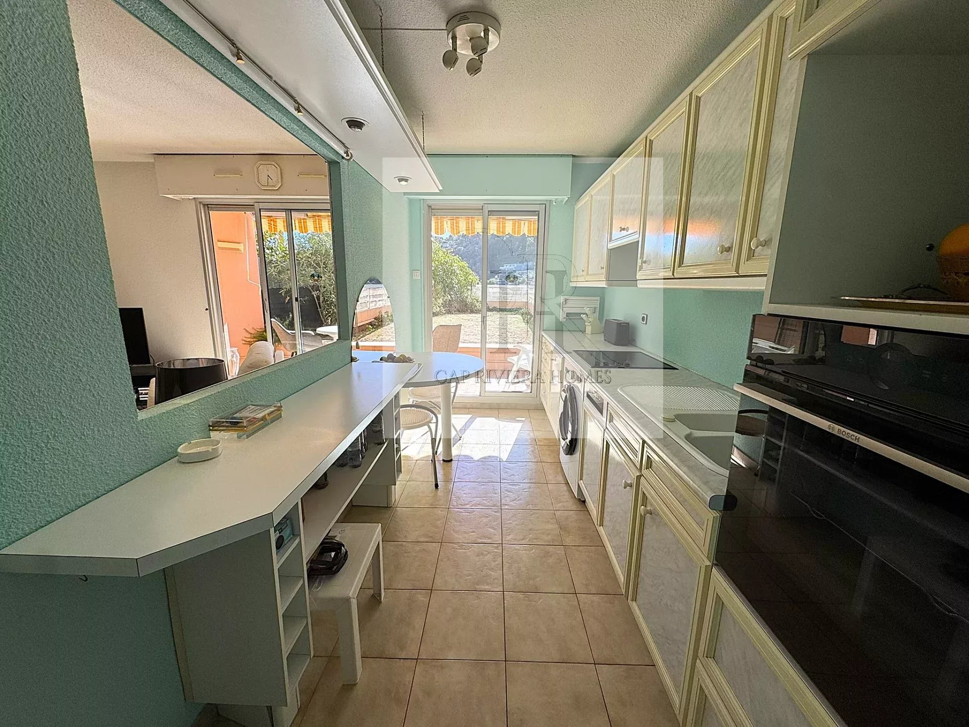 3 pièces de 70m2 comprenant 2 chambres dont une avec balcon, un grand salon, une cuisine équipée, un toilette indépendant, une salle de bains, une terrasse couverte ainsi qu'un jardin, un box fermé ainsi qu'une cave complète ce bien