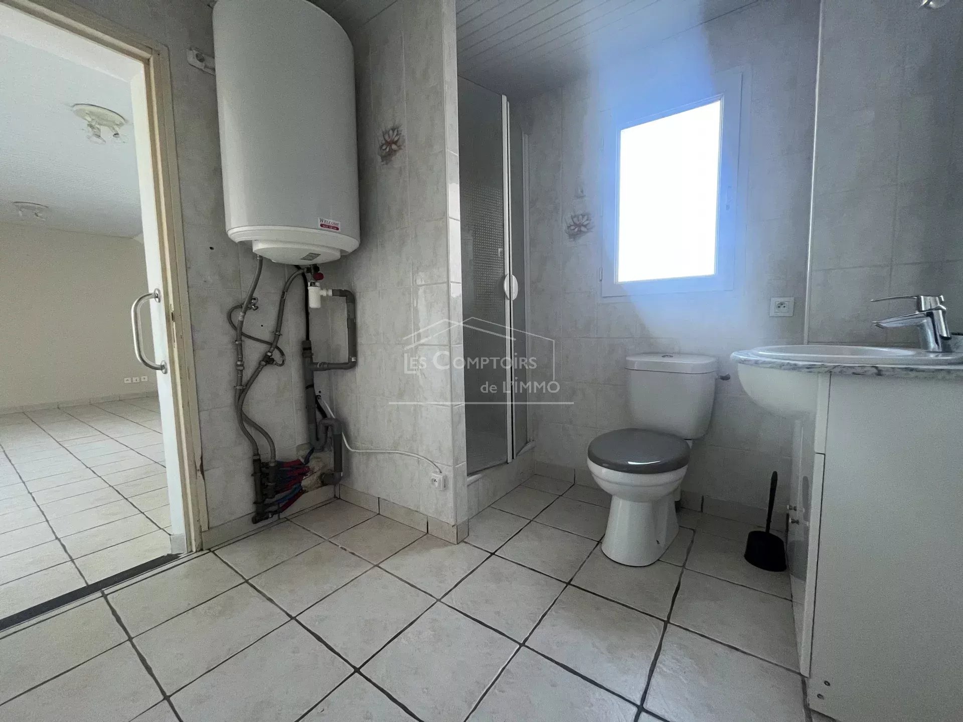 une pièce de vie avec coin cuisine, une chambre, une salle de douche avec WC et une dépendance attenante.